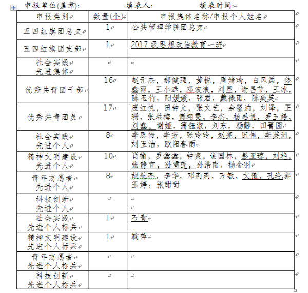 经过学生本人申报,按照学校学工部、团委相关通知文件,通过年级审核、学院学工领导小组决定对2018年度表现优秀的集体和先进个人进行表彰。