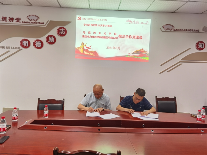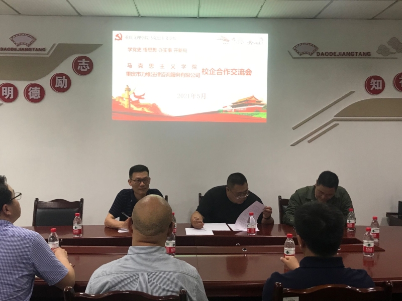重庆市力维法律咨询服务有限公司经理蔡兴雨代表本公司介绍了公司近年来的业务开展情况。蔡经理指出,力维公司作为重庆文理学院“文理创谷”的一家企业,与重庆文理学院有着很近的亲缘关系,为文理法学学子的成长添砖加瓦,是公司义不容辞的责任。我院院长李才俊介绍了法学专业的发展情况,并表示,随着一些新鲜血液的输入,力维公司的业务将会获得更好的拓展。我院副院长胡守敏谈到,力维公司是个年轻的、充满朝气的公司,相信它能够为年轻学生和律师提供锻炼和成长的舞台。