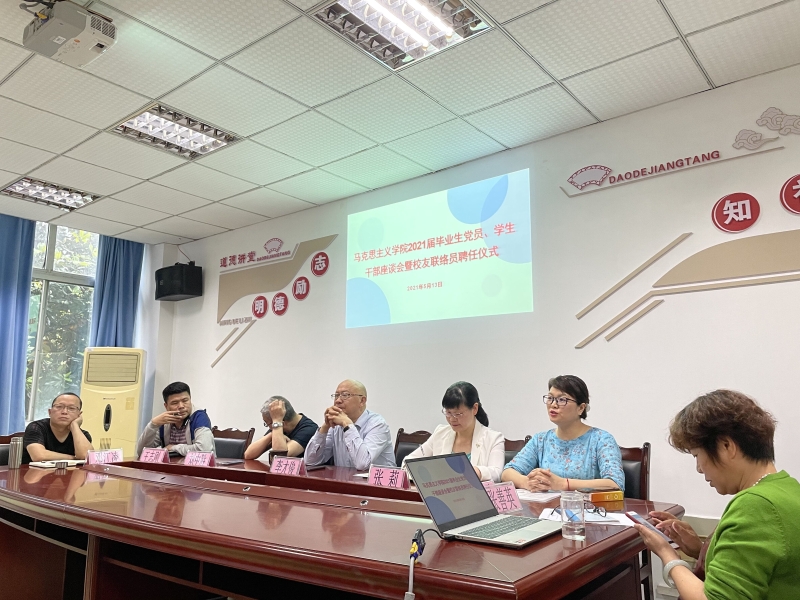 5月13日9:00,2021届毕业生党员、学生干部座谈会暨校友联络员聘任仪式在学院C205会议室召开,学院院长李才俊、党总支书记刘明明、副院长张莉以及部分教师代表参加座谈会。