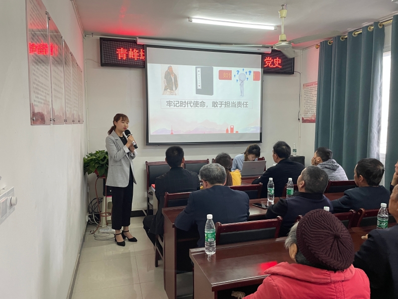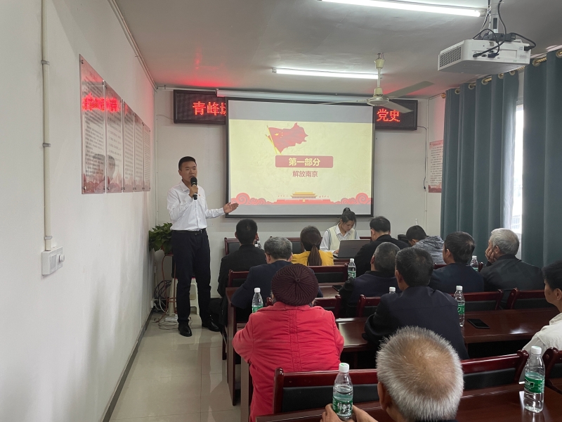 到达青峰镇社区后社区负责人龙勇为在场的所有党员介绍了本次宣讲的流程与意义,同时他也强调作为党员要坚持学党史,以党史学习教育为契机,认真回顾中国共产党走过的路,不能忘记来时的路,继续走好前行的路。随后,宣讲团成员在会议室为所有社区党员们进行党史故事宣讲,6名同学先后上台讲述“牢记时代使命,敢于担当责任—五四运动”“国共两党第一次合作”“遵义会议”“渡江战役”“抗美援朝”“抗美援朝—杨根思”“‘铁人’王进喜”。宣讲团成员们声情并茂,将充沛的情感融入一个个经典的党史故事之中,用简洁的语言讲述了中国共产党百年征程的艰辛岁月,赢得了阵阵掌声。