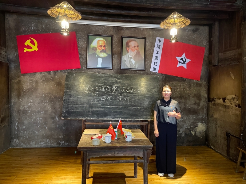 师生一行达到红军街,先后学习了军服、军旗的的演变历程,参观了保留完好的红军街历史建筑,由衷的为中国共产党百年历程发至内心的感动,为生活在如此美好的新时代而感到自豪。在传习所,镇长陈飞宇为师生上了一场生动的“微党课”,刘明明、张苏强、李华夏先后上台分享了学习体会,学生代表现场朗诵了毛泽东的诗词。