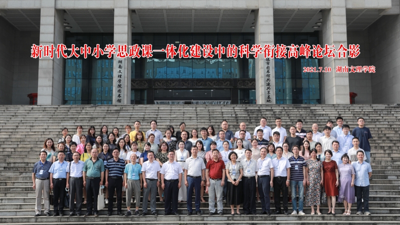 凝聚思政合力,培养时代新人。7月10日,新时代大中小学思政课一体化建设中的科学衔接高峰论坛在湖南文理学院举行。来自华中师范大学、湖南师范大学、重庆文理学院等50余所大中小学及幼儿园、学术期刊、学术团体的专家学者共计100余人参加了本次论坛。我院院长李才俊教授、副院长胡守敏教授应邀参会。