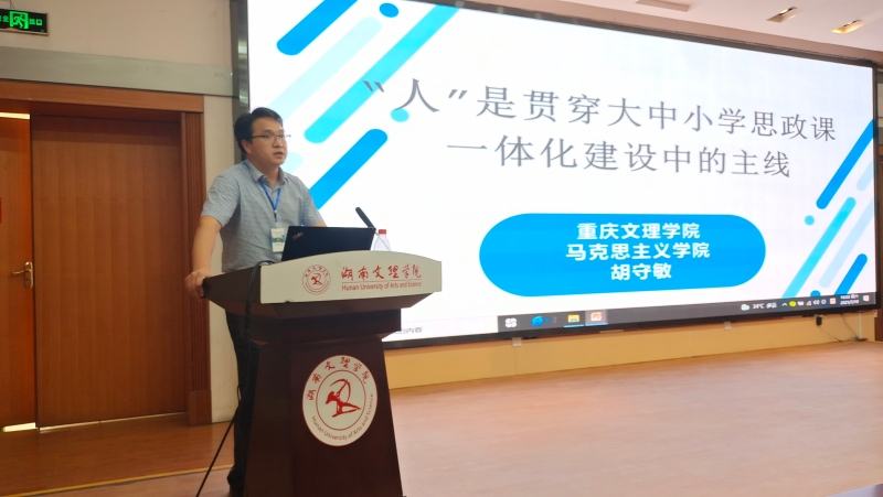 在论坛的分论坛环节,我院副院长胡守敏教授作了《“人”是贯穿大中小学思政课一体化建设中的主线》的学术报告。报告从大中小学思政课一体化建设中