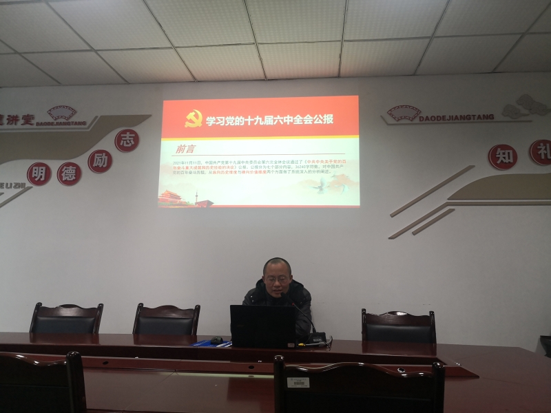 会议首先由刘明明书记带领全体党员同志进行“以案四说”暨师德师风警示专题教育,其次由学院文华老师作《中共中央关于党的百年奋斗重大成就和历史经验的决议》解读专题报告和《党的十九届六中全会精神新闻发布会有关内容》,江敏、古诗等同志围绕会议主题谈了自己的心得体会。