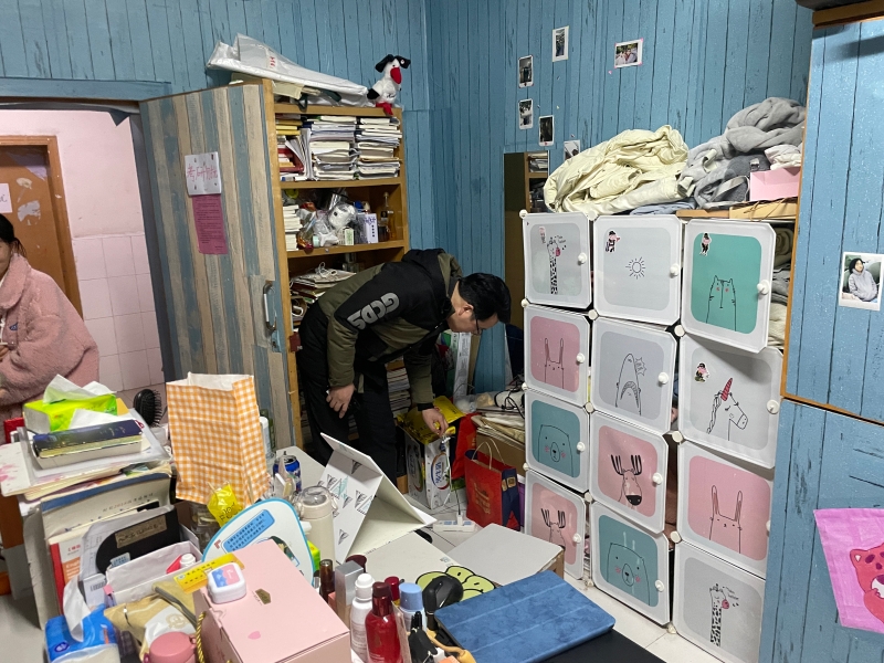 在检查过程中,胡守敏在检查中强调电线尽量不要私拉乱接,一是有安全风险。二是影响宿舍整体美观。同时,插线板又接插线板的现象突出,一定要规避插线板过多串联,避免引起用电过载到账火灾等隐患发生。刘明明在查看中讲到务必要把宿舍清洁卫生做好,要创设良好的宿舍环境;寒假即将开始,宿舍要关好水龙头、电源,自行检查宿舍的安全隐患,规避风险,锁好或者带走贵重物品。年级辅导员对重点宿舍、典型例子做了详细记录。