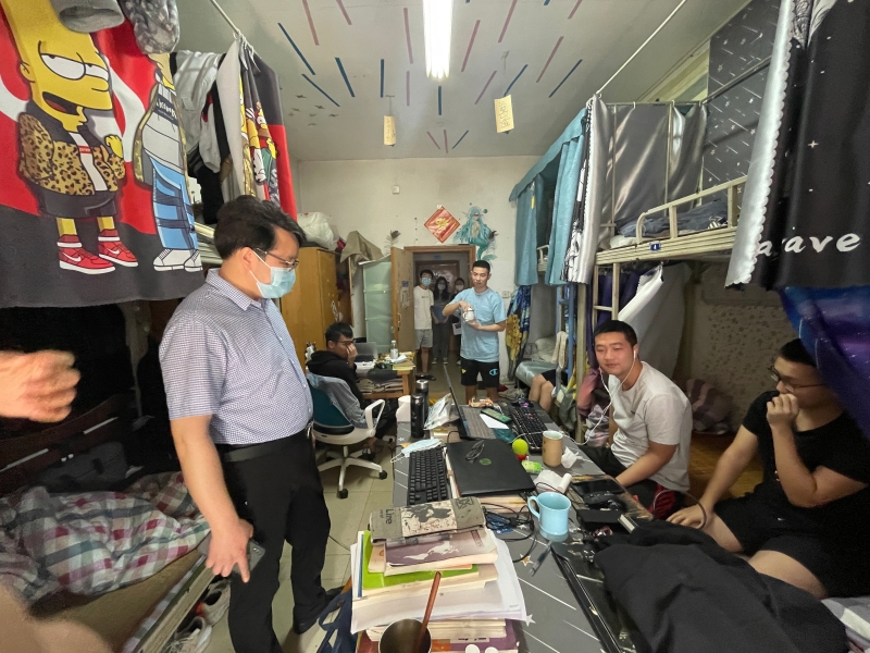 2022年3月18日上午11点,学院党政领导与全体学工人员分两个小组深入学生宿舍进行走访。