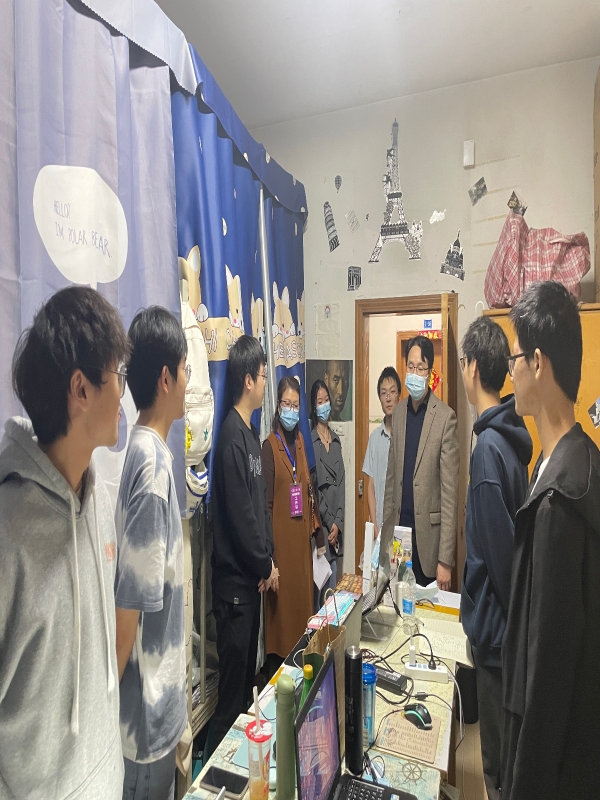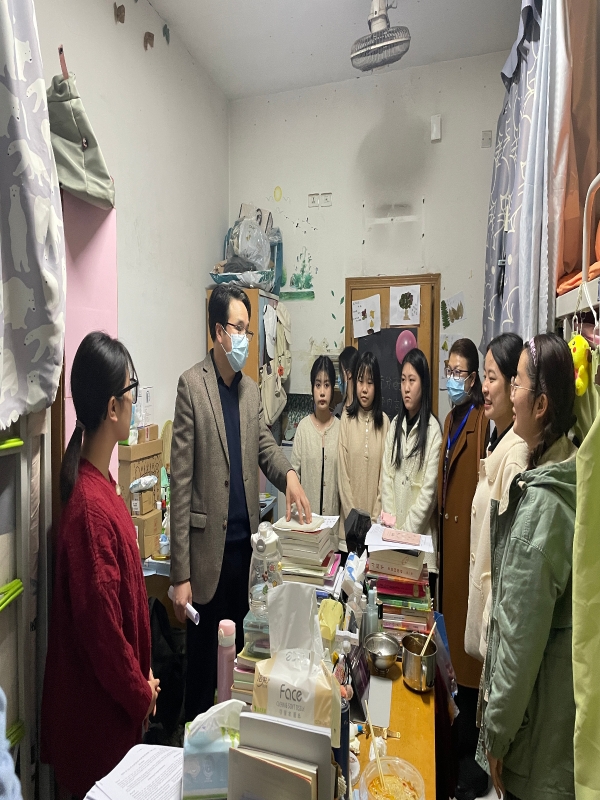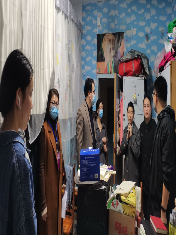 为积极落实学校疫情防控要求,进一步做好常态化疫情防控工作,及时了解学生思想动态、学习状况、身心状态。2022年11月22日18:00,学院院长胡守敏、党总支书记刘明明、学工办主任李华夏走访学院部分宿舍。