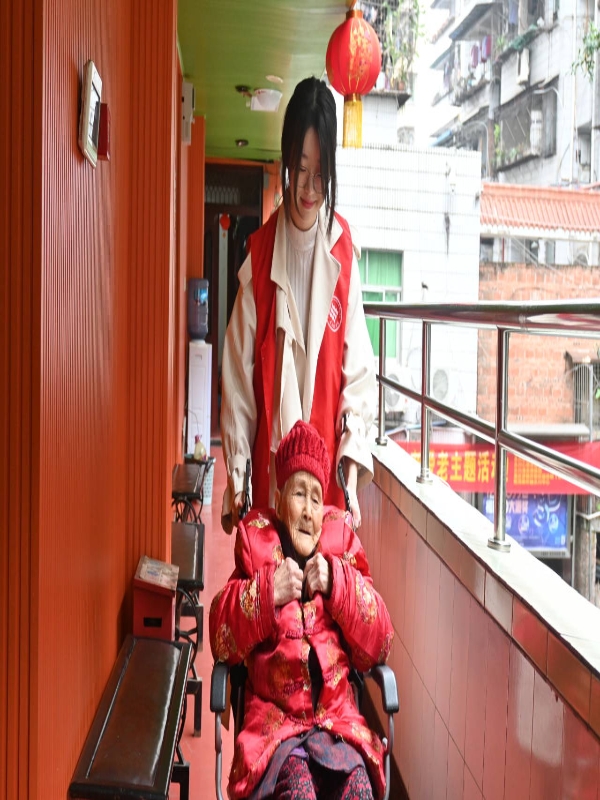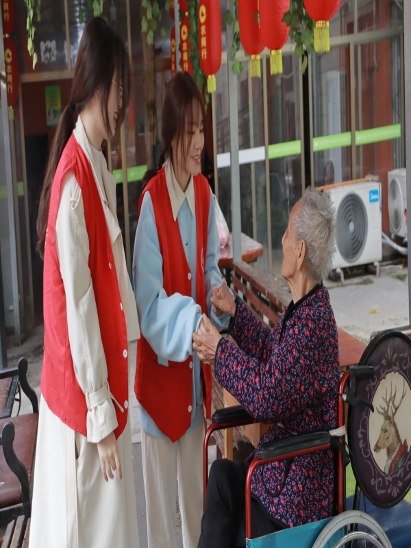 志愿者们到养老院做义工,为老人们带去水果、牛奶等营养品,清扫了敬老院的院坝,整理了老人们的房间、陪老人们聊天并参与后厨同工作人员一起为老人准备午餐。志愿者们对老人的陪伴,让年迈孤独的老人们感受到来自社会的关怀。随后,各位志愿者们搀扶老人们到活动室外,给老人们带去表演《我和我的祖国》和《我的中国心》,同时还有精心准备的二胡表演,大家都用饱满的热情带动现场的活动氛围。他们和老人一起唱歌,陪老人们闲话家常,分享自己学习生活中的趣事,现场欢声笑语,其乐融融。