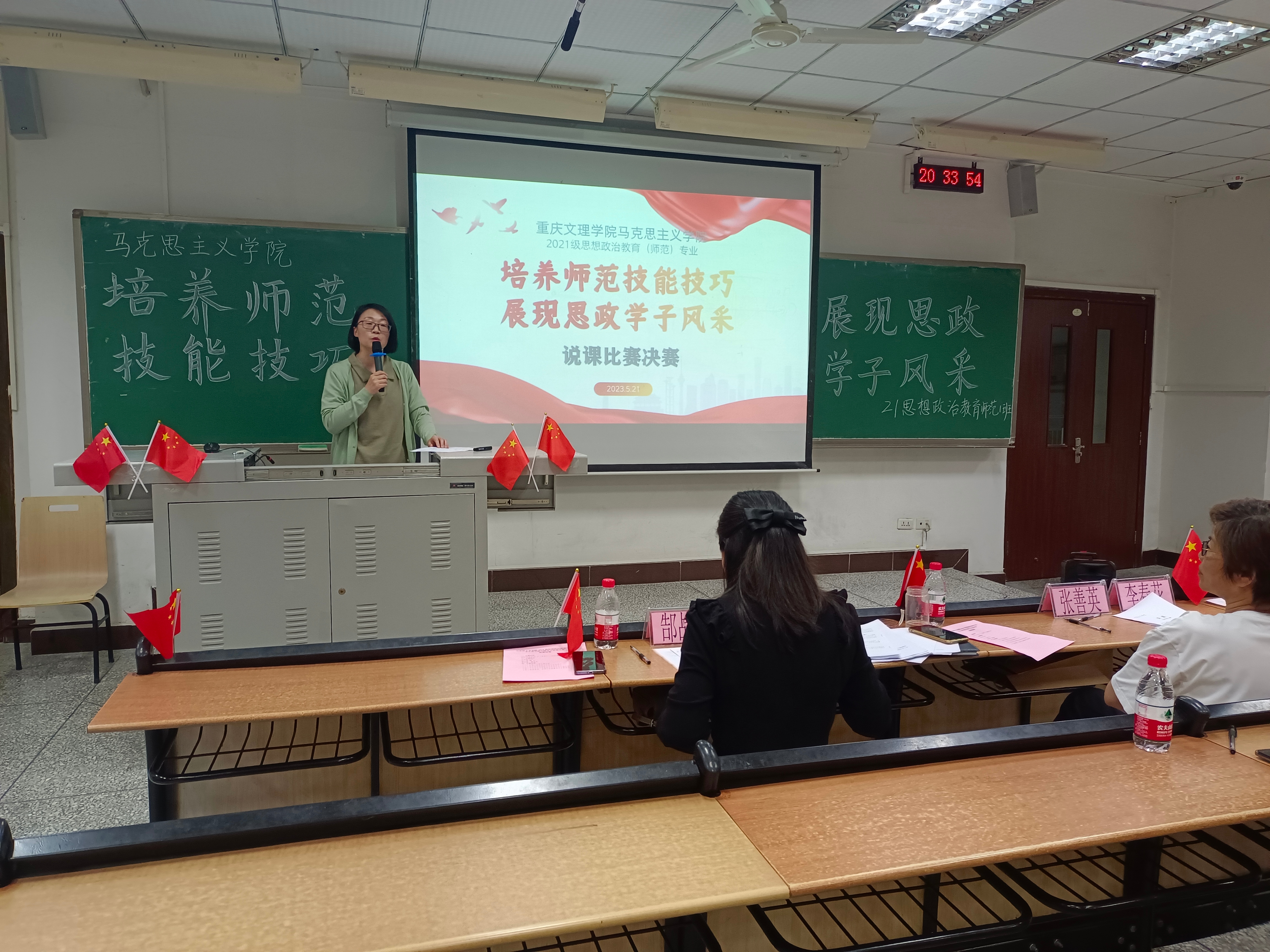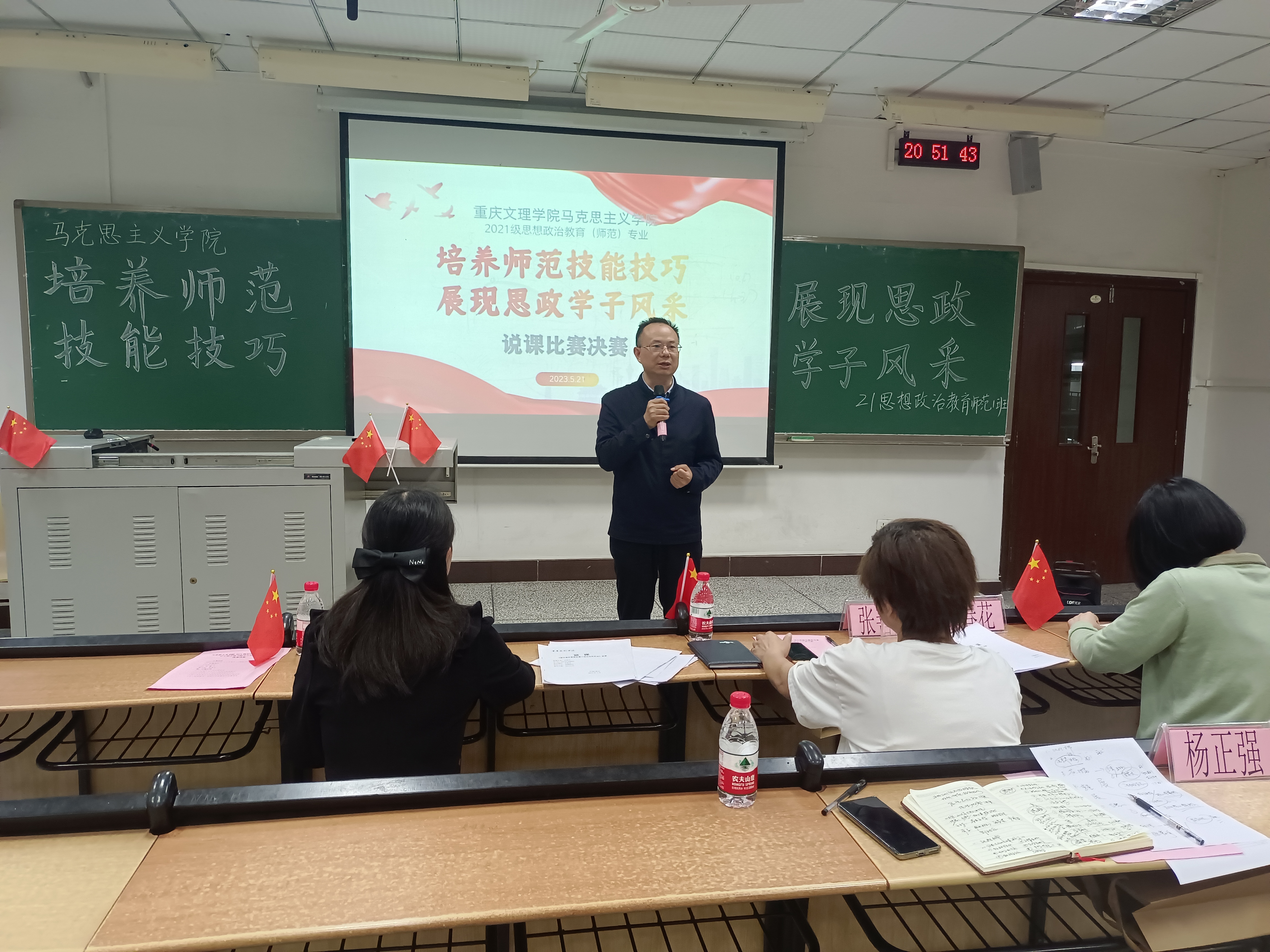 为提高我院思想政治教育专业学生的专业技能,展示教学改革的新成果,Betway必威西汉姆联官方网站于2023年5月21日晚,在红河 A 区知津楼D205教室举行了“培养师范技能技巧 展现思政学子风采”说课比赛决赛。党总支书记杨正强出席比赛活动,张善英、李春花、郜战红三位老师担任决赛评委。