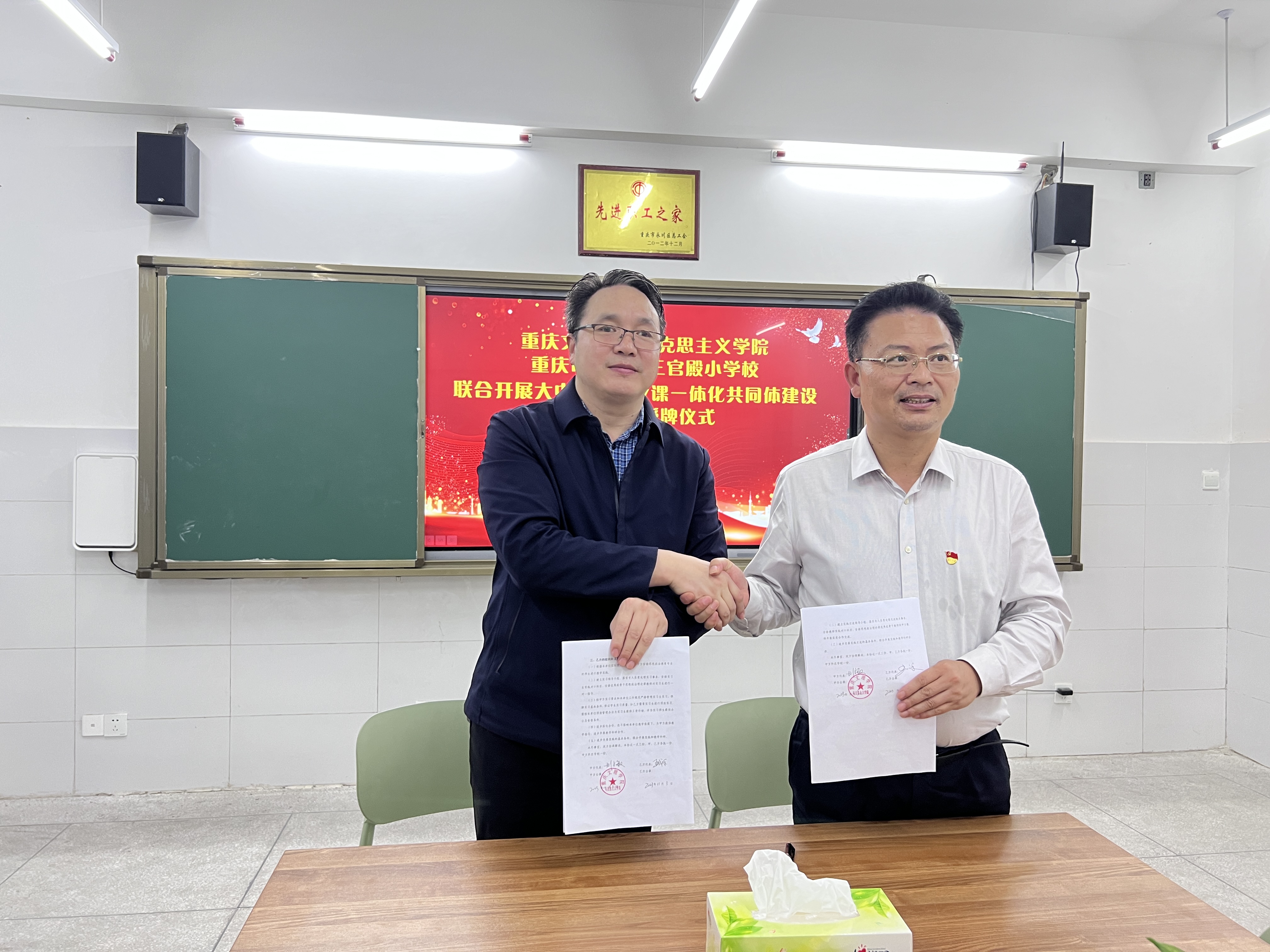 随后,胡守敏和王成祥代表双方签订了《重庆文理学院Betway必威西汉姆联官方网站 永川区三官殿小学关于联合建立思想政治教育专业教学基地协议书》、《重庆文理学院Betway必威西汉姆联官方网站 永川区三官殿小学关于联合建立思想政治理论课实践教学基地协议书》。