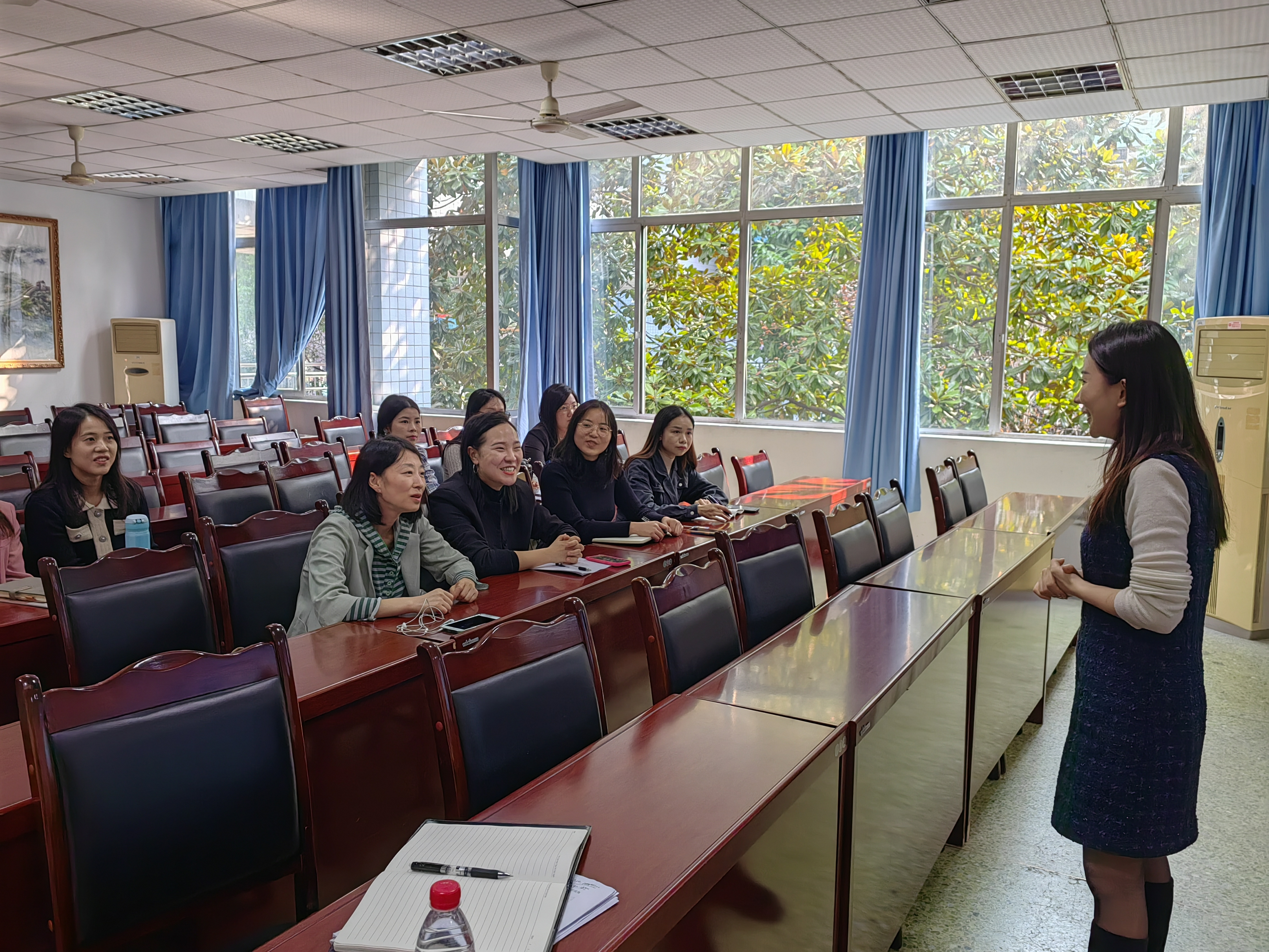 叶静从教师礼仪教态、教学语言运用、课堂管理等方面结合自身教学经验,轻松愉悦地与老师们交流,语言风趣幽默,极富感染力,讲授过程精彩而极具启发性。