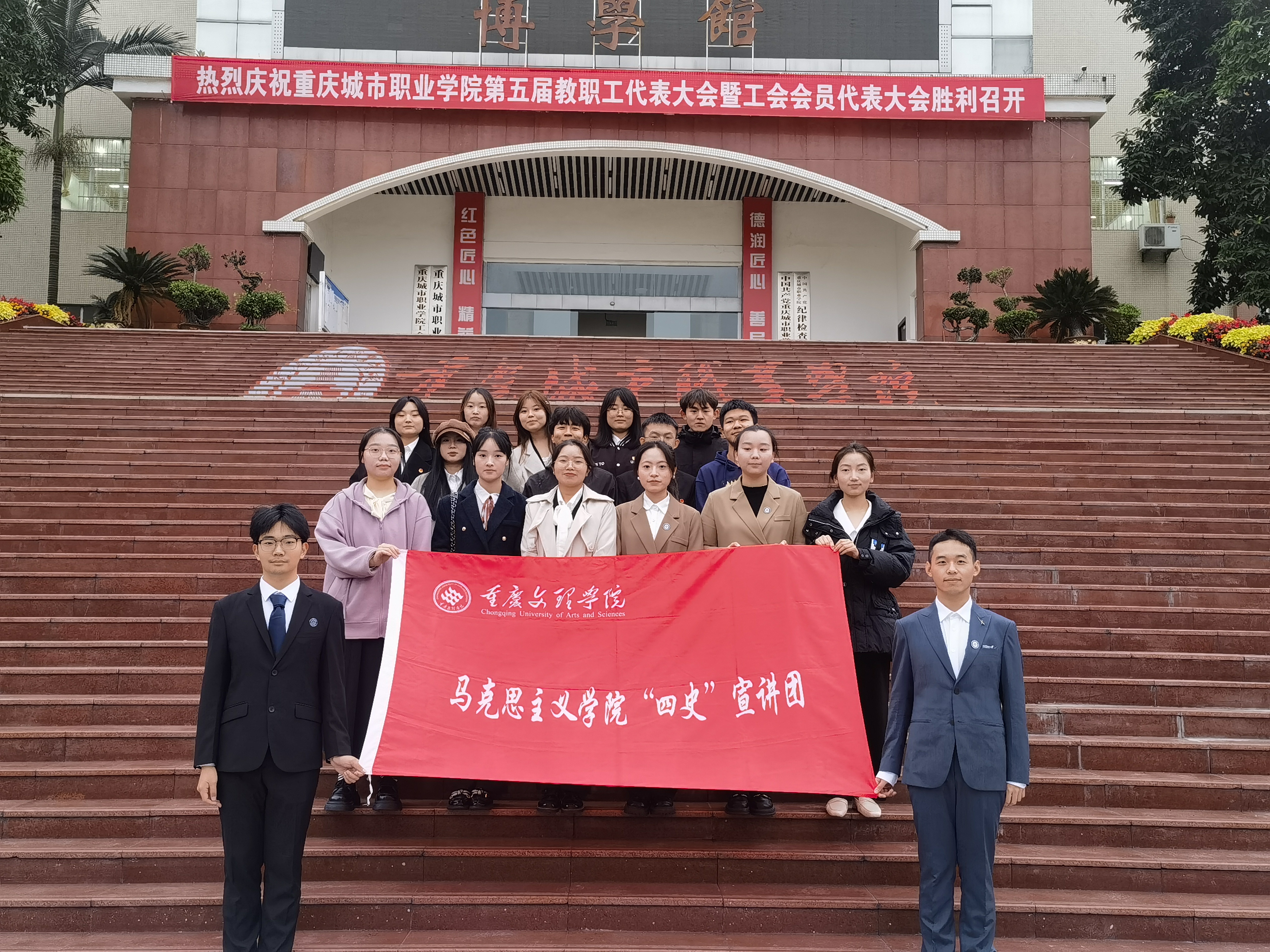 为深入学习贯彻习近平新时代中国特色社会主义思想和党的二十大精神,弘扬革命文化,传承红色基因,打造“行走的思政课堂”,2023年11月20日下午,我院“四史”宣讲团八名成员走进重庆城市职业学院大数据学院开展党史宣讲,重庆城市职业学院大数据学院全体学生干部参加此次活动。