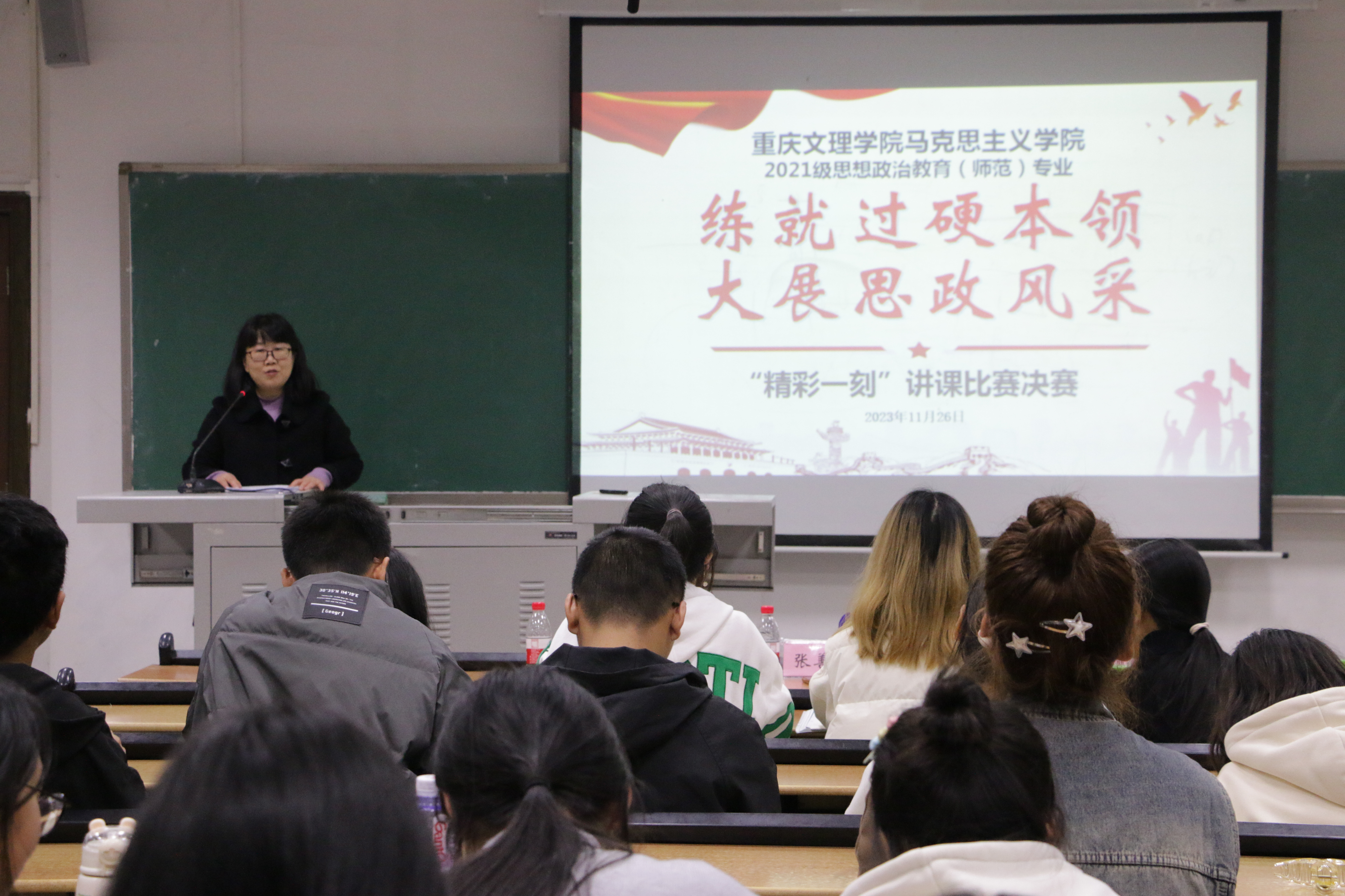 为彰显Betway必威西汉姆联官方网站思想政治教育专业教学改革成效,促进专业理论和教学实践有机结合,激发学生更新教育教学理念和掌握现代教学方法的热情,我院于11月26日晚在红河A区知津楼D205成功举办了主题为“练就过硬本领 大展思政风采”的“精彩一刻”讲课比赛决赛。郜战红、张善英、江敏三位老师担任评委。