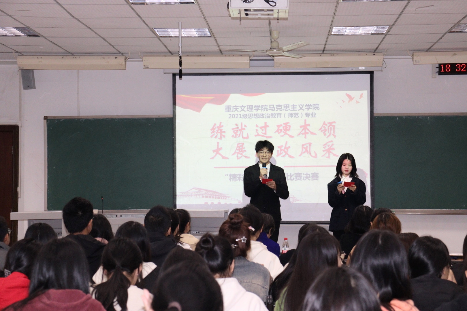 本次比赛由2021级思想政治教育专业全体学生以个人为单位报名参赛,学生选取初高中政治教材内容进行讲课。比赛分为初赛与决赛两个阶段。在11月中旬随机分为4组,分别举行了初赛,共选拔出12名同学进入决赛。经过激烈角逐,左慧、张胜楠、顾佳、李星、颜悦5名同学获得一等奖;吴锦芳、李思雨、陈蕾宇、姚国超、刘恋、陈思甜、范梦萍7名同学获得二等奖;何良山、马茜蕾、沈玉玲、杨馥榕、黄诗芮、李盈盈、陈佳佳、郑琳静、张莉欣、易春莉、赵鑫、谢永12位同学获得三等奖。