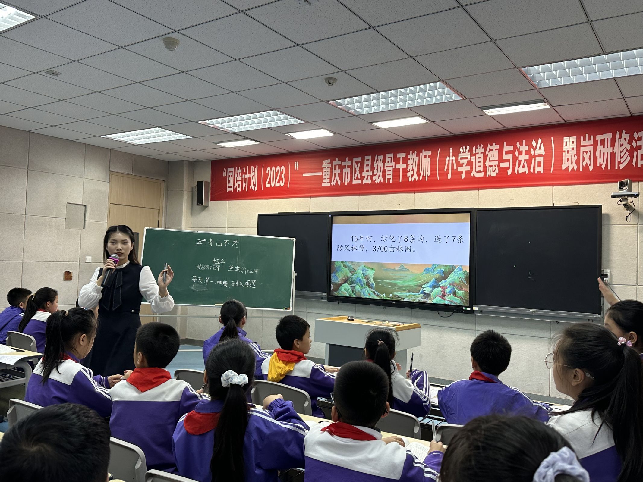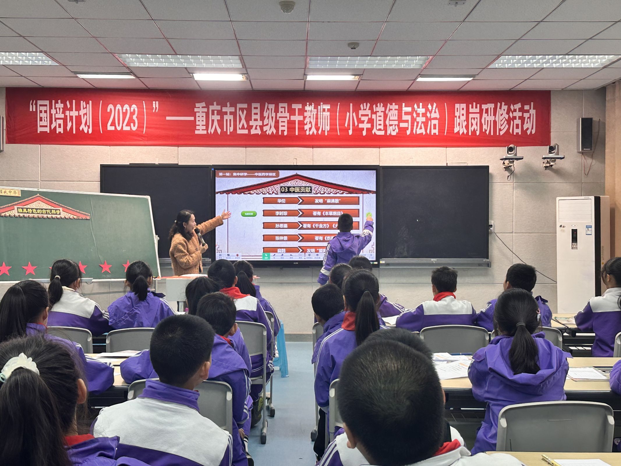 在跟岗研修阶段,学员分成5个组分别深入到永川兴龙湖小学、永川新红旗小学、永川汇龙小学、永川神女湖小学、永川红河小学开展了为期一周的交流和观摩,并与在校老师开展同课异构等教学研讨。