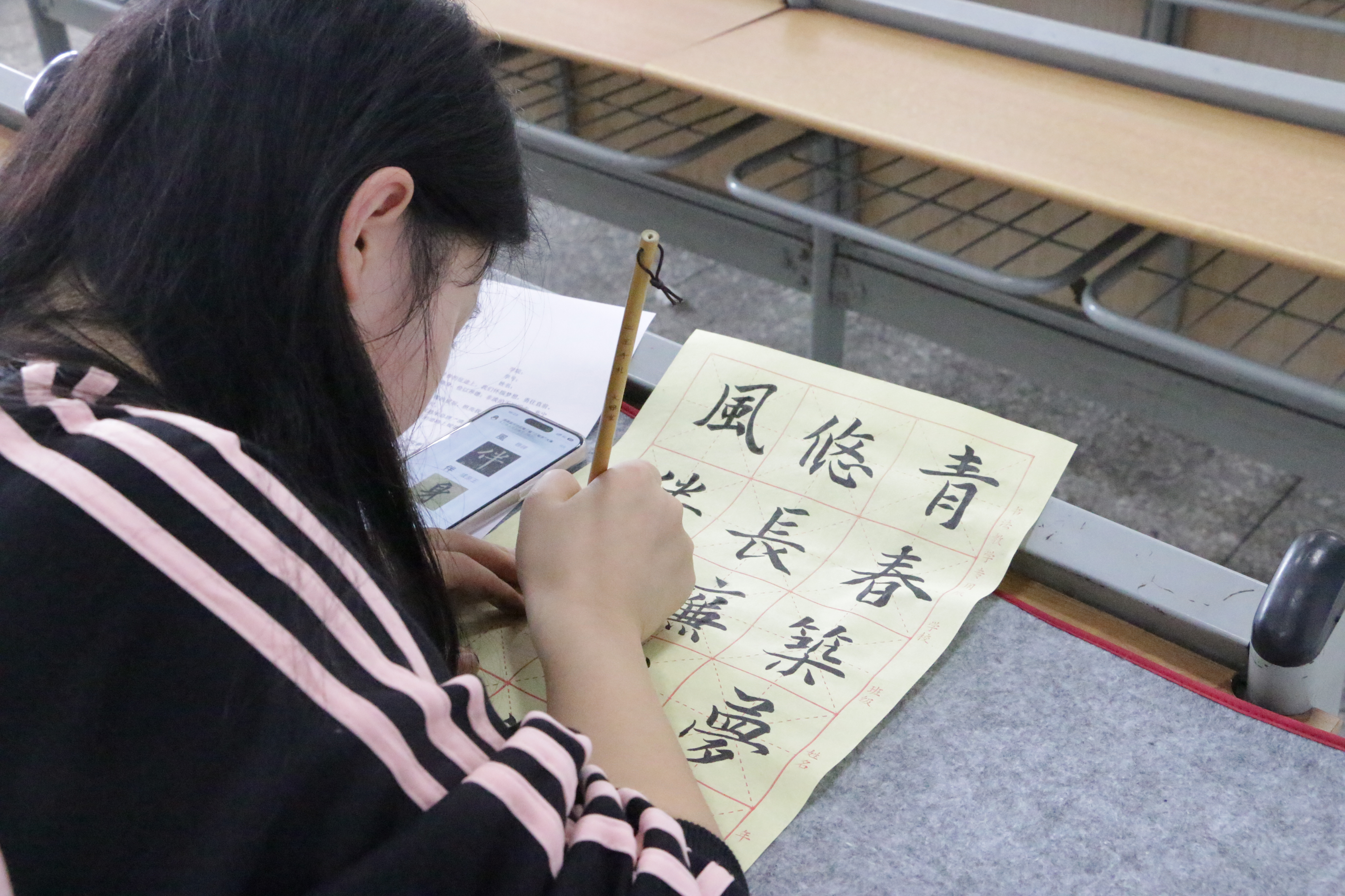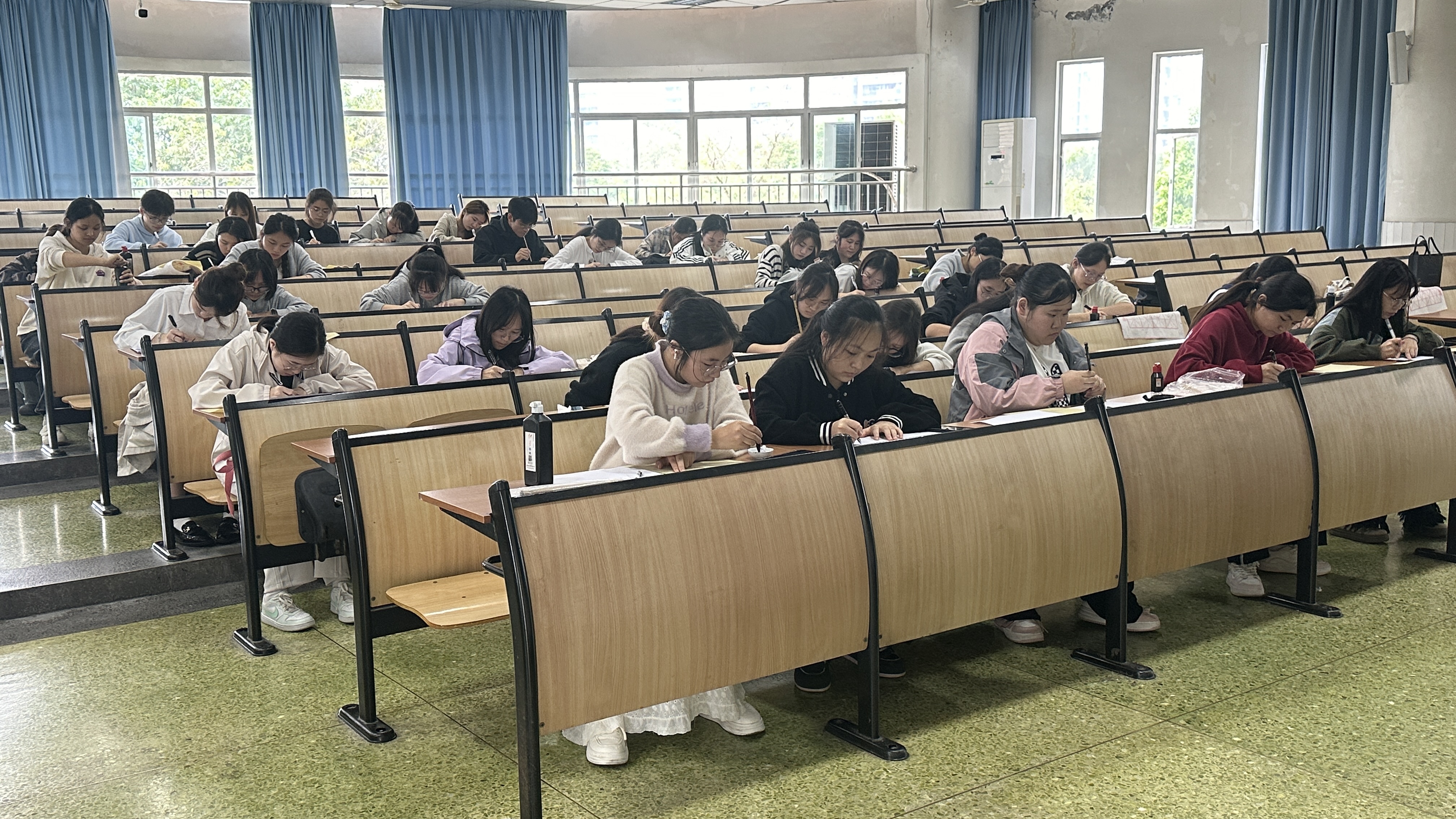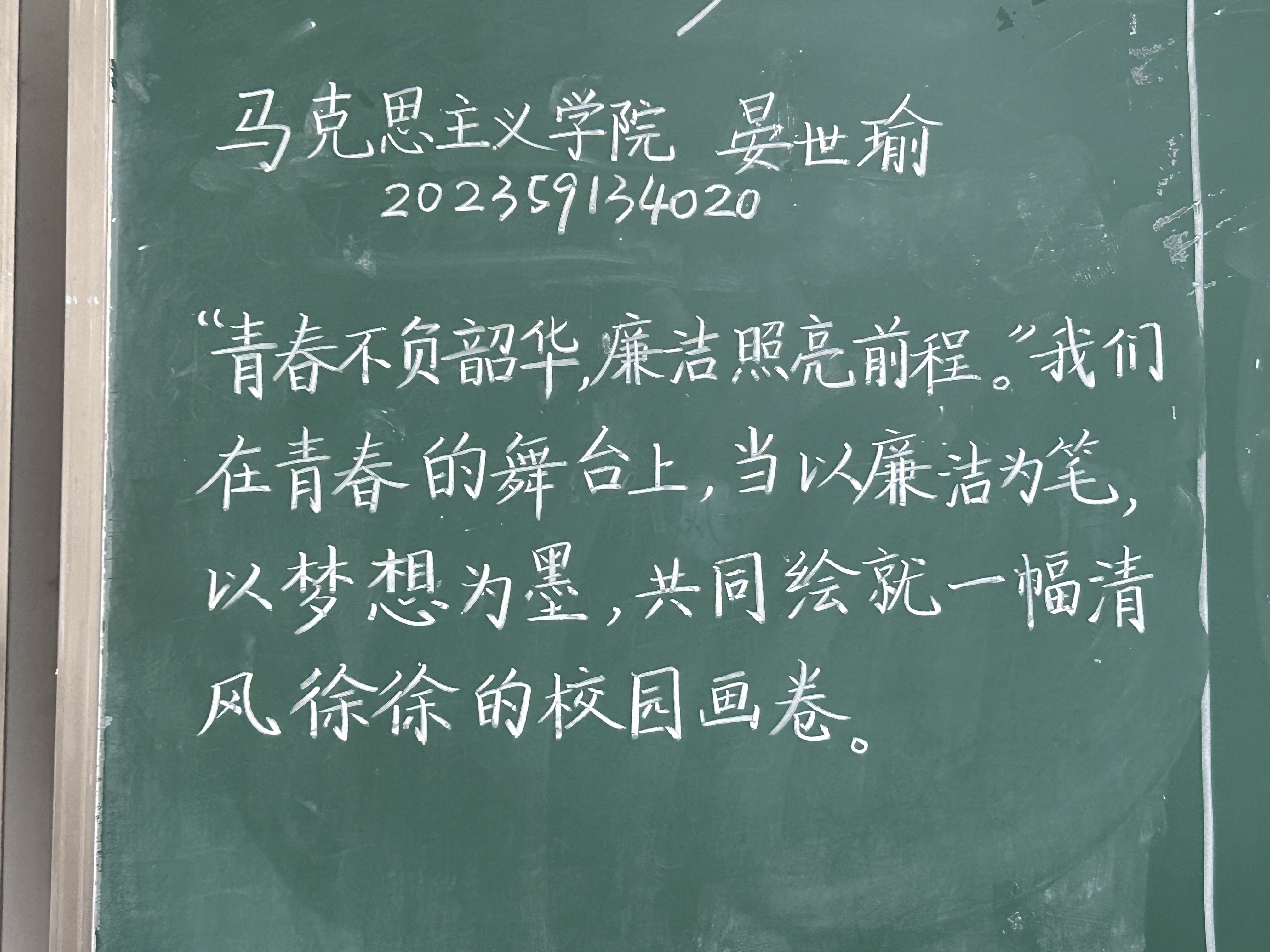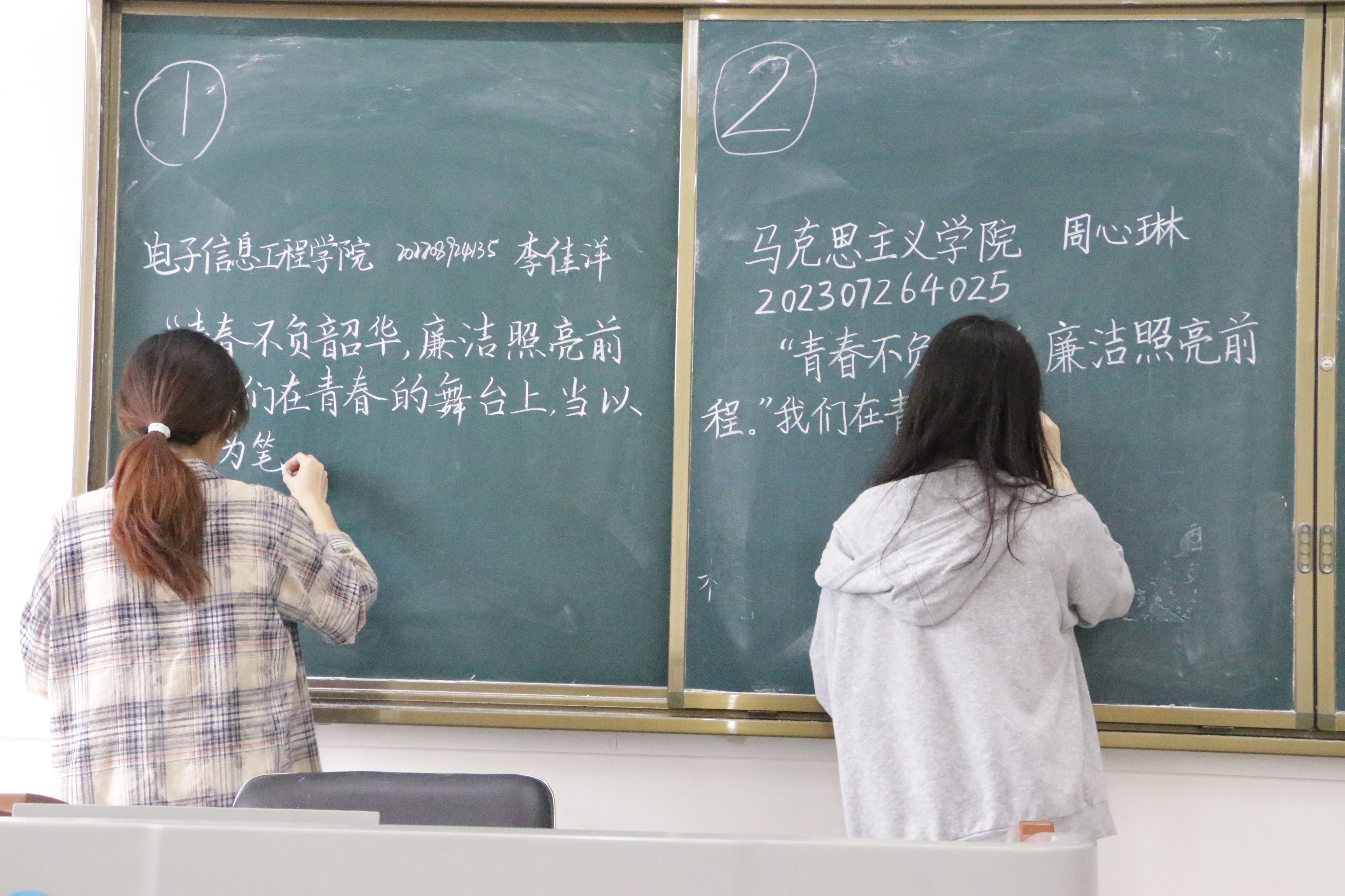 比赛现场气氛热烈,选手们围绕廉洁主题,全神贯注地进行创作。一撇一捺彰显道德修养、笔墨风采。钢笔字刚劲流畅,似诉说爱国之志;毛笔字挥洒自如,展现汉字韵味与民族自豪;粉笔字规整大气,传达对廉洁文化的热爱。他们在书写中彰显汉字之美,更将爱国情怀、廉洁文化等融入其中。