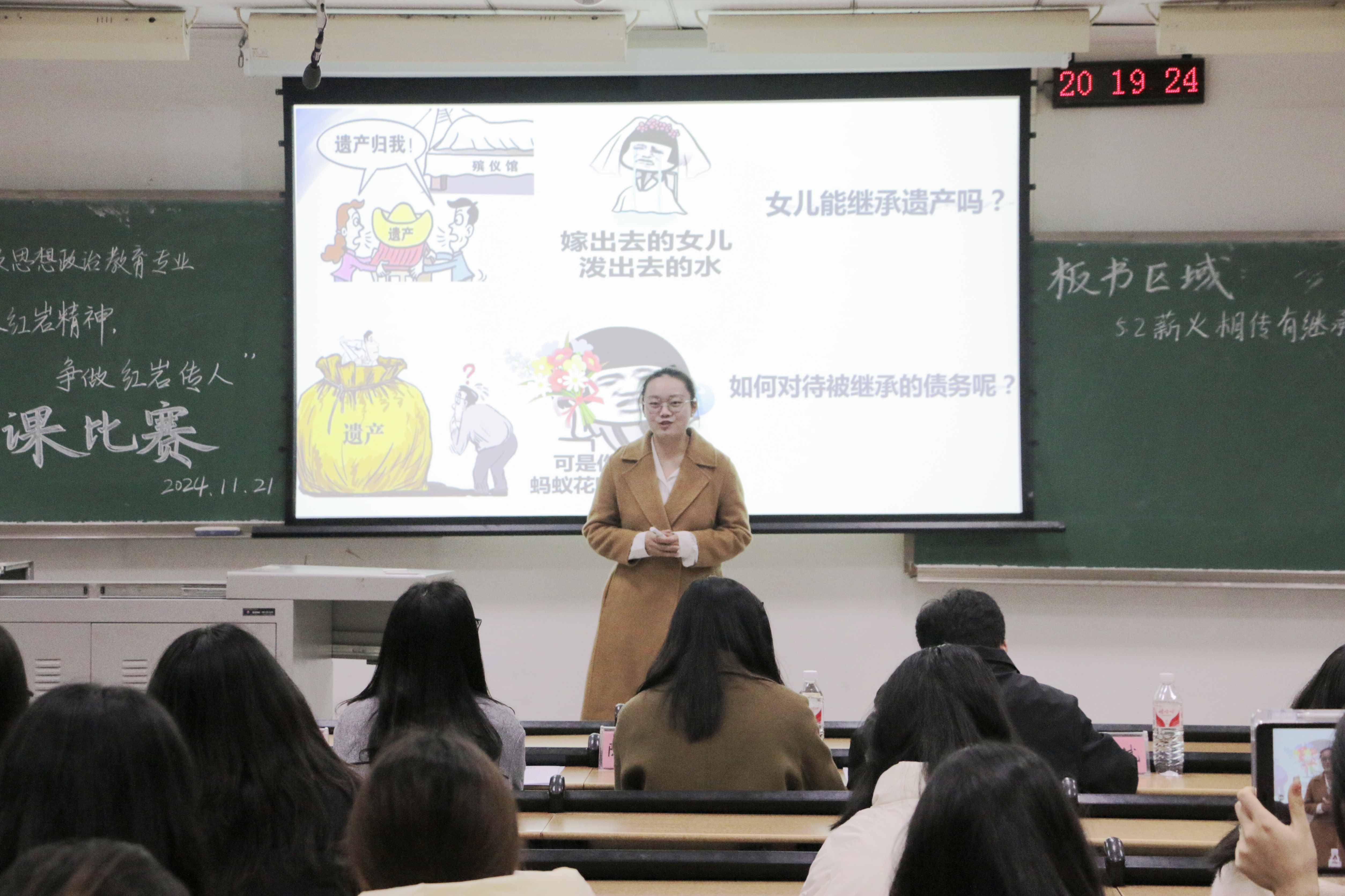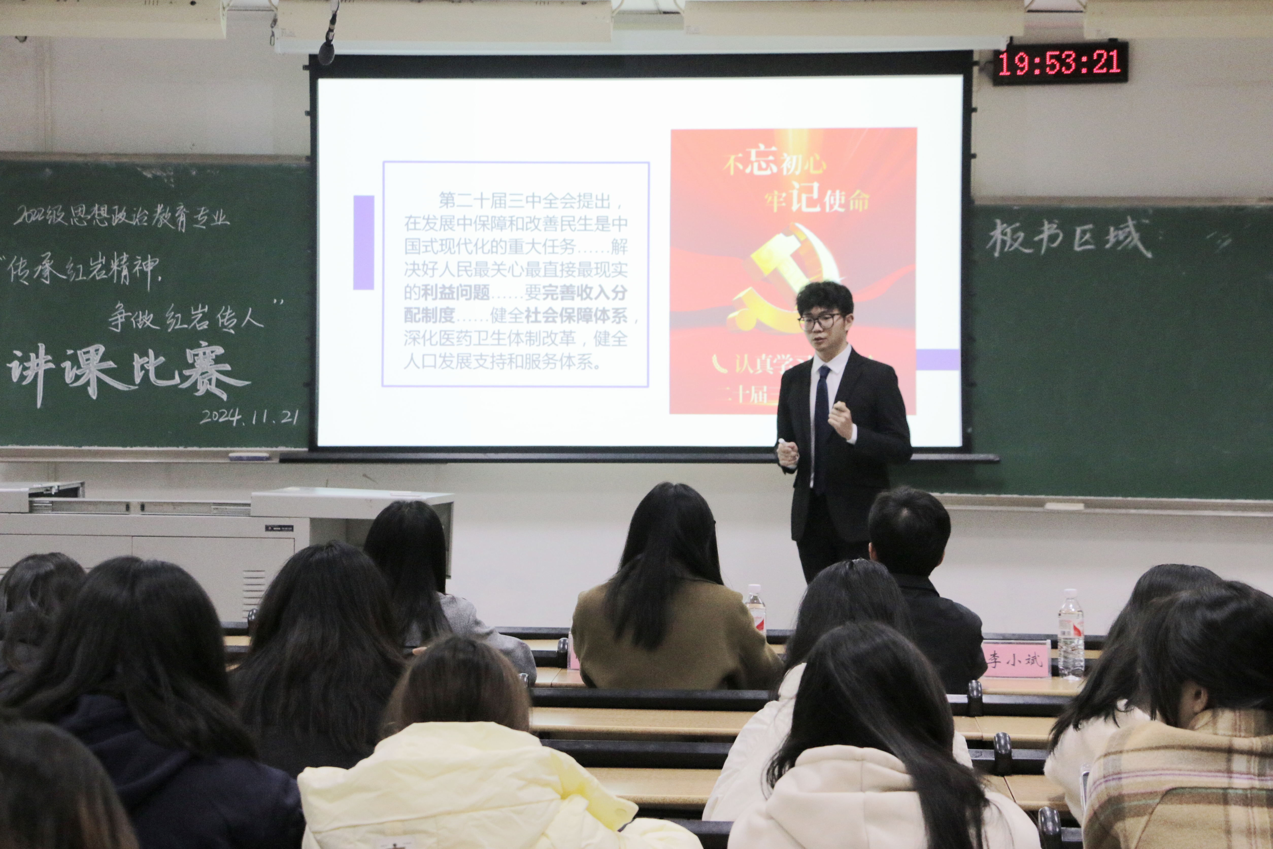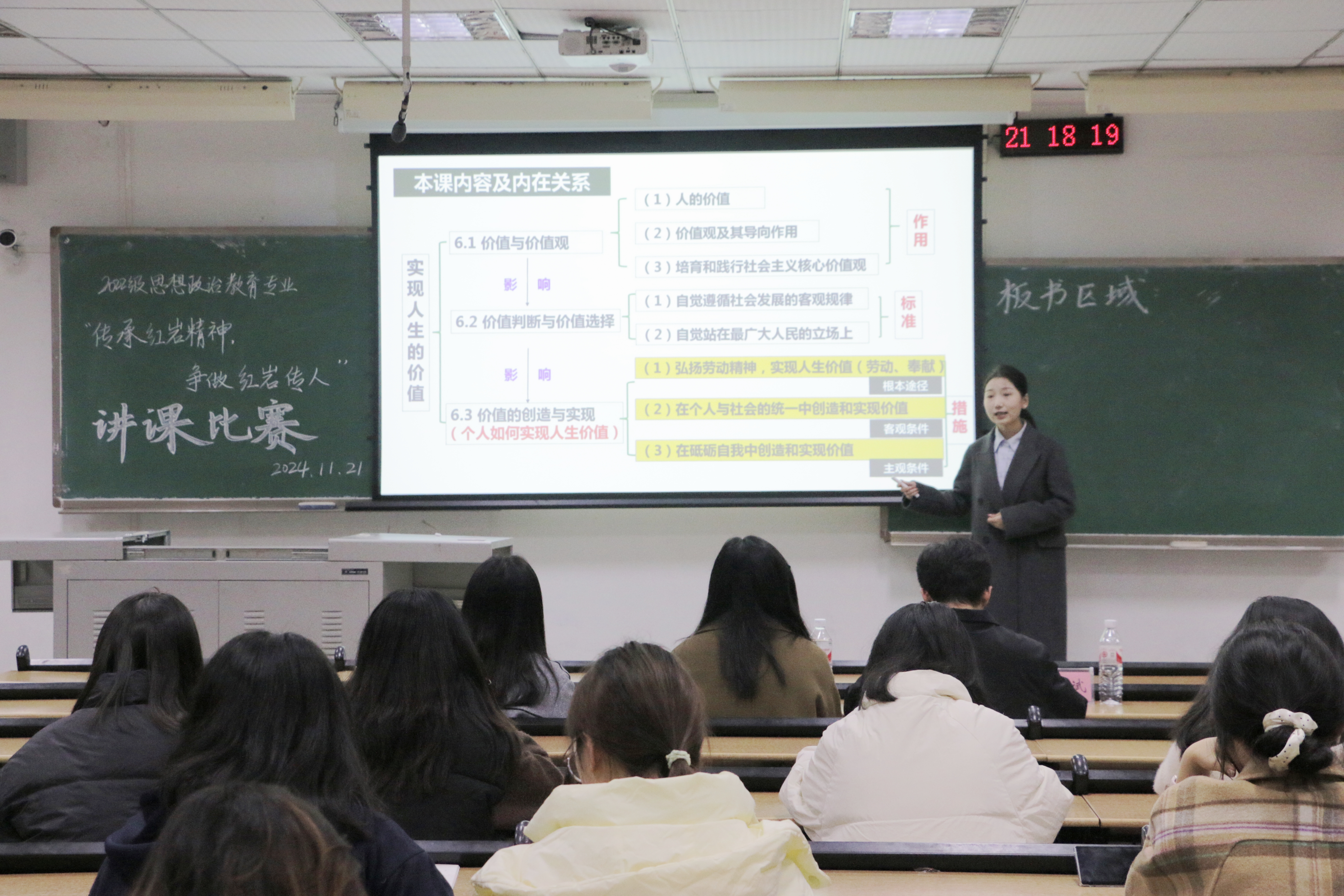 本次比赛以学生个人为单位报名参赛,要求选择初、高中阶段思政课教材某一章节或某一目内容进行课件制作并进行展示汇报,既加强了2022级学生对初高中教材的理解和对讲课流程的熟悉,又锻炼了学生在短时间内制作多媒体课件的能力。比赛分为初赛与决赛两个阶段。在11月中旬抽签分为4组举行了初赛,选拔出13名同学进入决赛。
