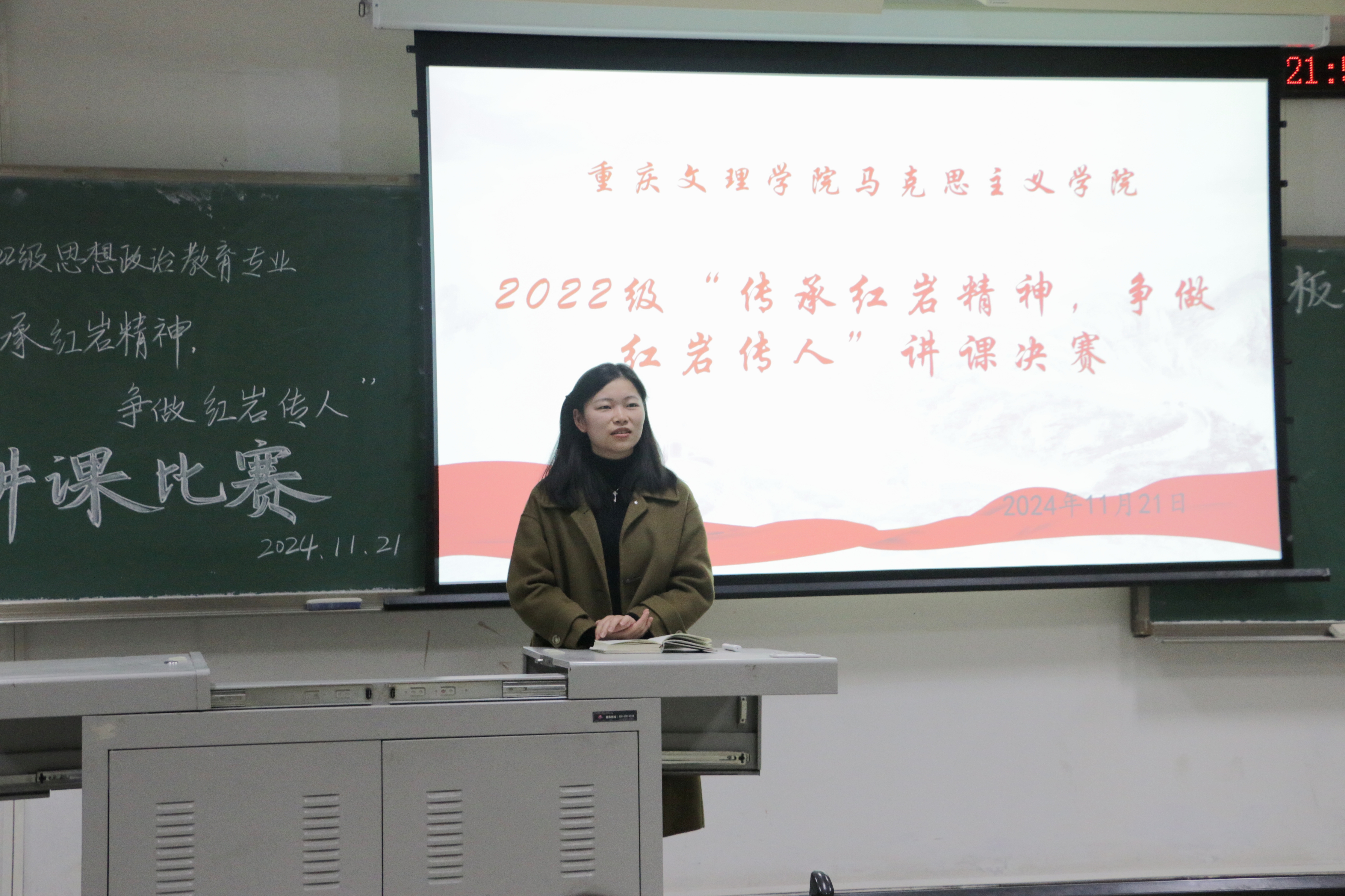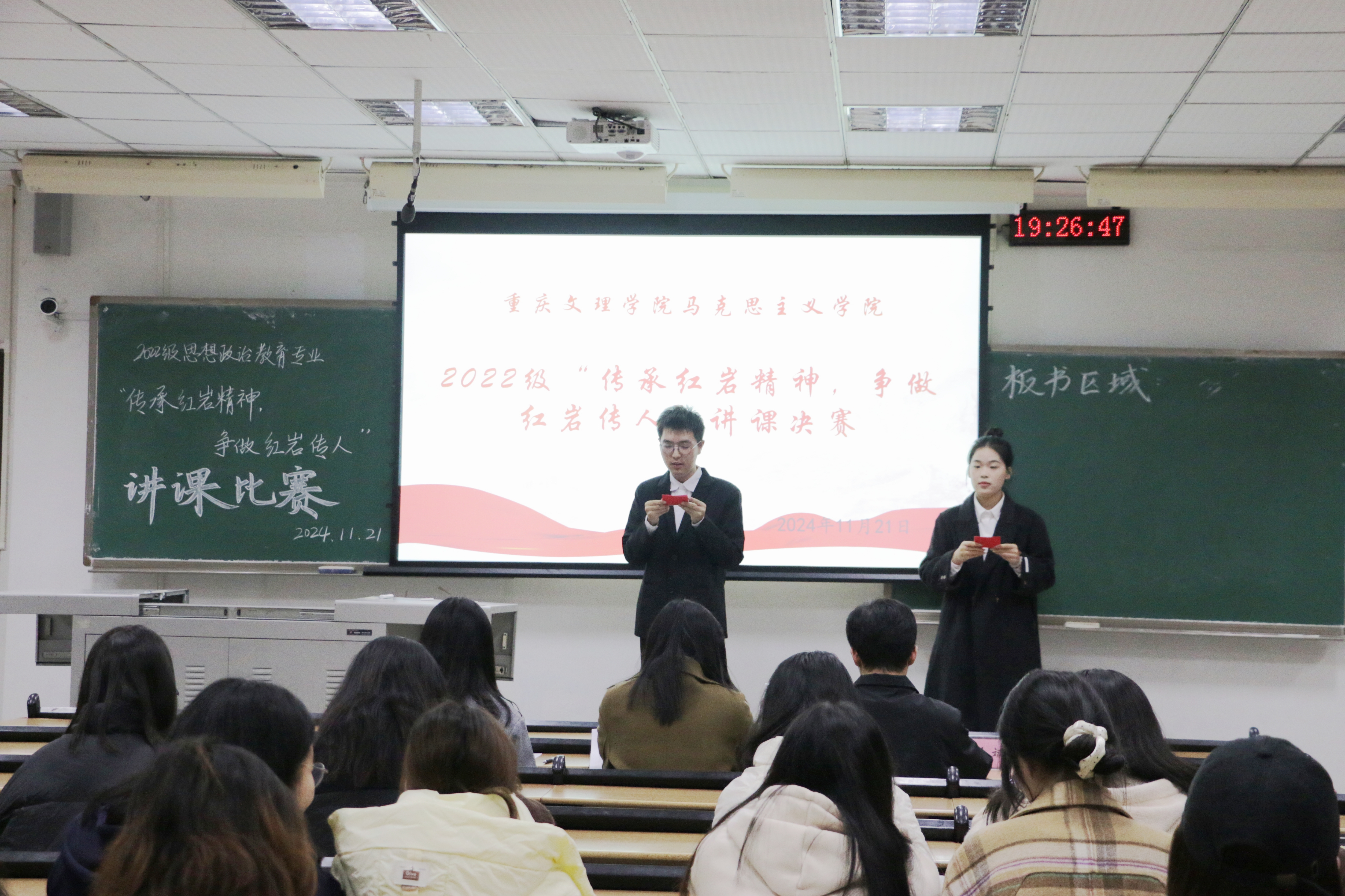 为提高Betway必威西汉姆联官方网站思想政治教育专业学生的专业技能,展示教学改革的新成果,我院于11月21日晚在红河A区知津楼D204成功举办了主题为“传承红岩精神,争做红岩传人”的讲课比赛决赛。陈垒垒、董芳芳、李小斌三位老师担任评委。