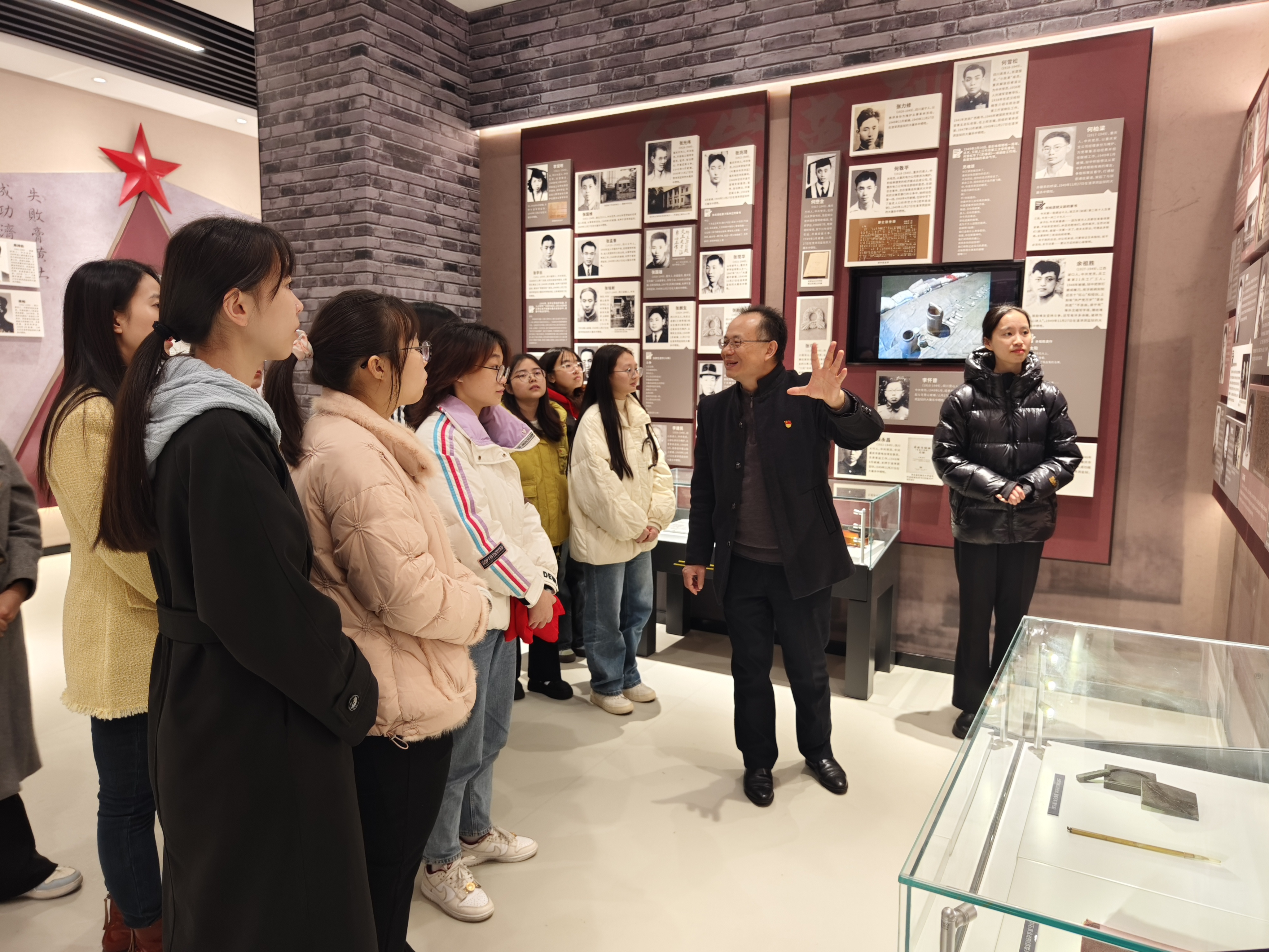 随后在档案馆讲解员的带领下,参观了285位红岩英烈和25位护厂烈士的先进事迹。该陈列展陈面积300多平方米,采用图文展板、实物展柜多媒体、高科技等展陈形式展出英烈图片500余张、实物展品50余件、视频20余个。