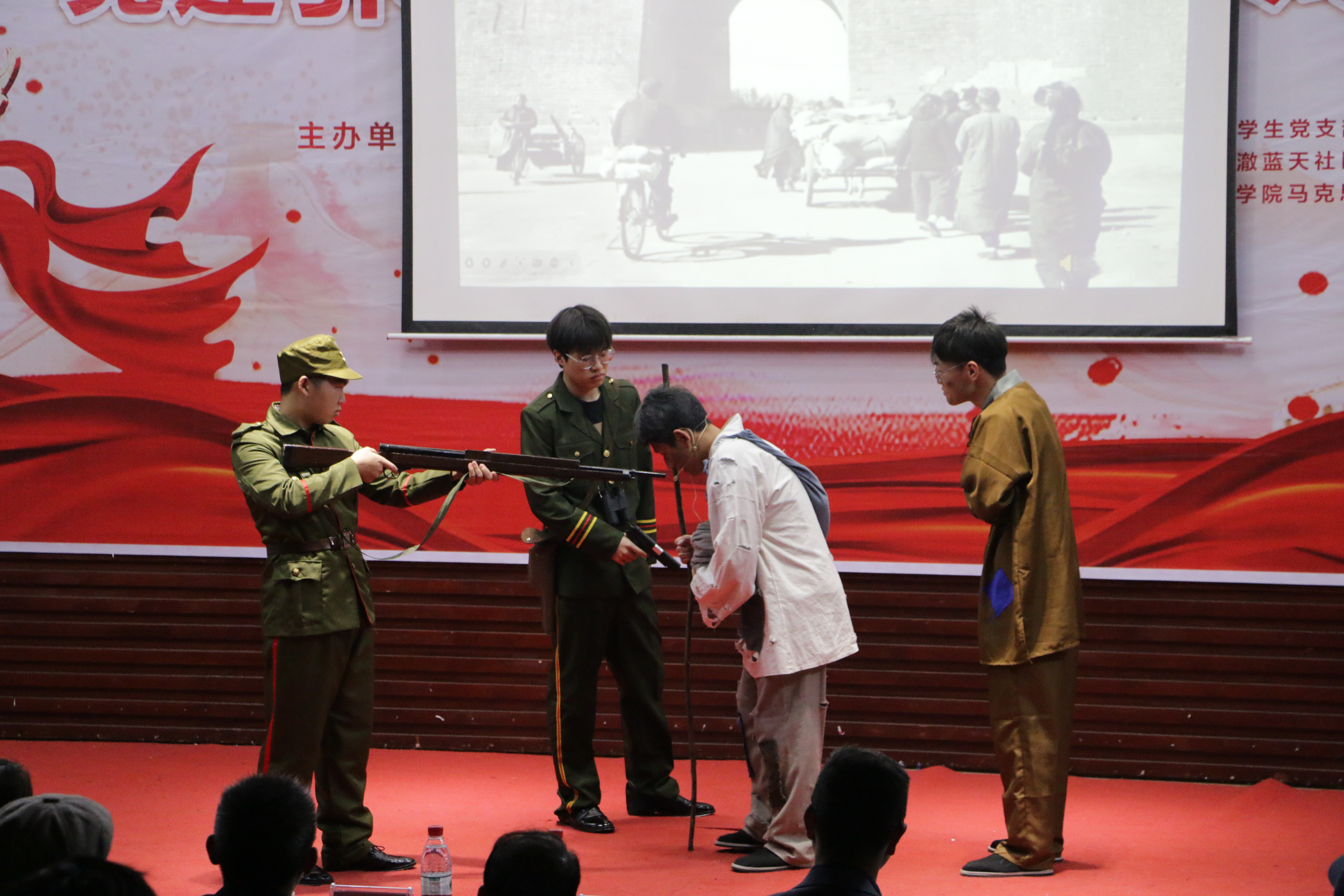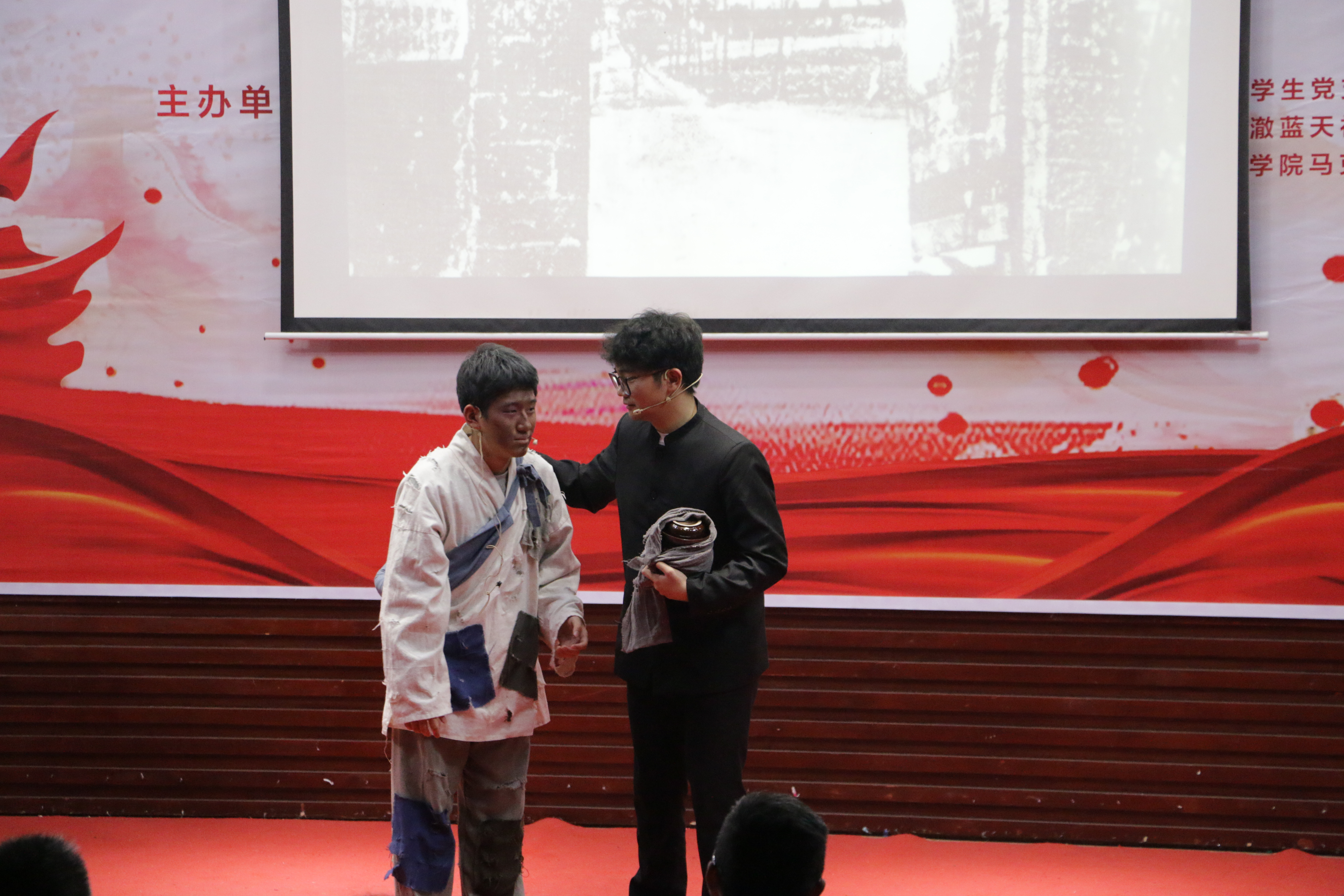 电子信息工程学院的作品《铁骨铸魂,西迁壮志—汉阳铁厂迁徙时代的工业精神》、药学院的作品《不变的初心 永恒的使命—毛泽东与黄炎培的“窑洞对”》、经济管理学院的作品《肝胆相照,共商国是—毛泽东“三顾特园”的故事》、化学与环境工程学院的作品《筑梦三线,坚韧奉献——三线建设精神》获得二等奖。