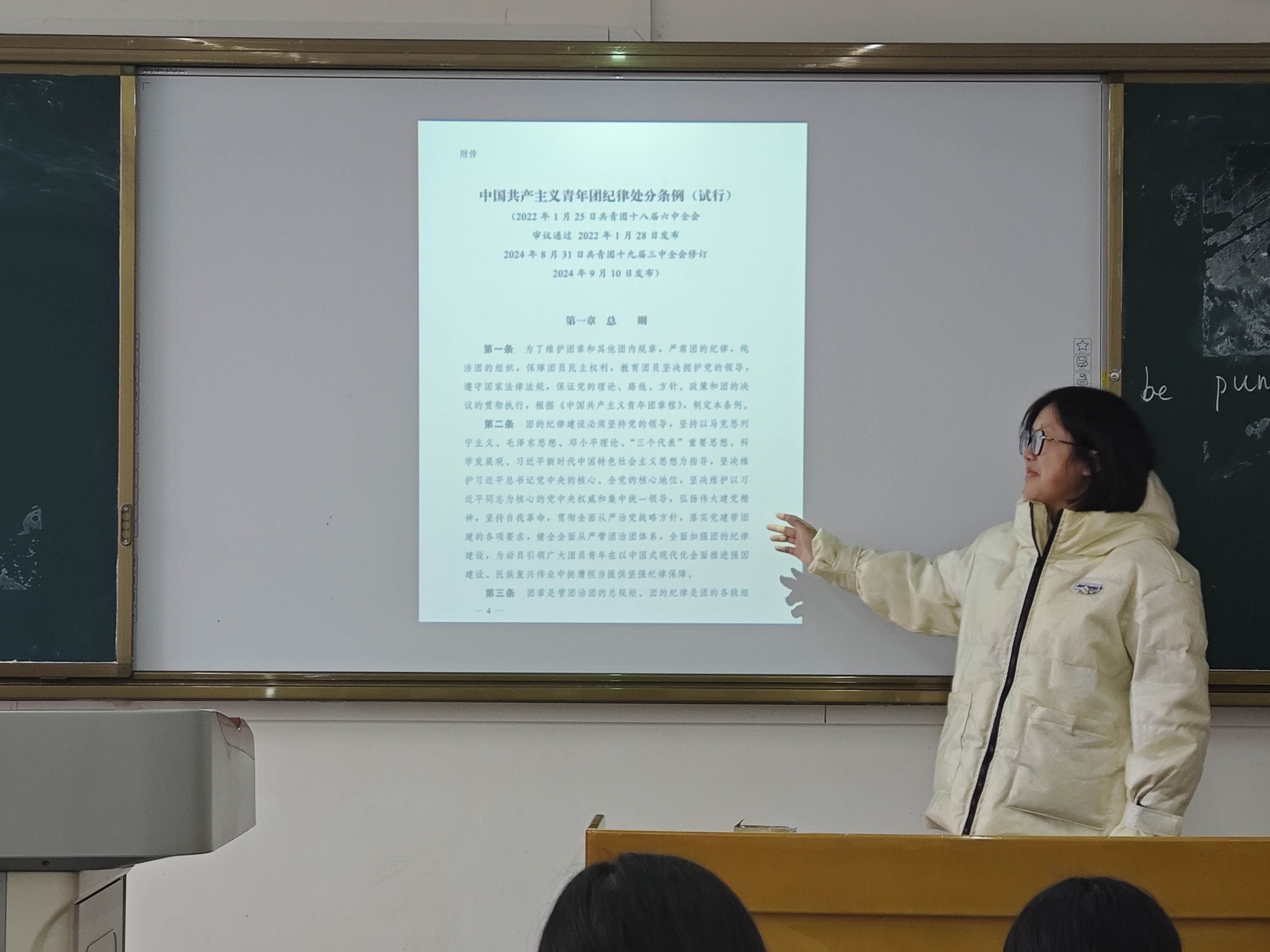 为强化青年团员纪律意识,提升团组织的凝聚力和战斗力,近日,学院积极组织2022、2023、2024级思想政治教育(师范)专业各班深入学习《中国共产主义青年团纪律处分条例》。