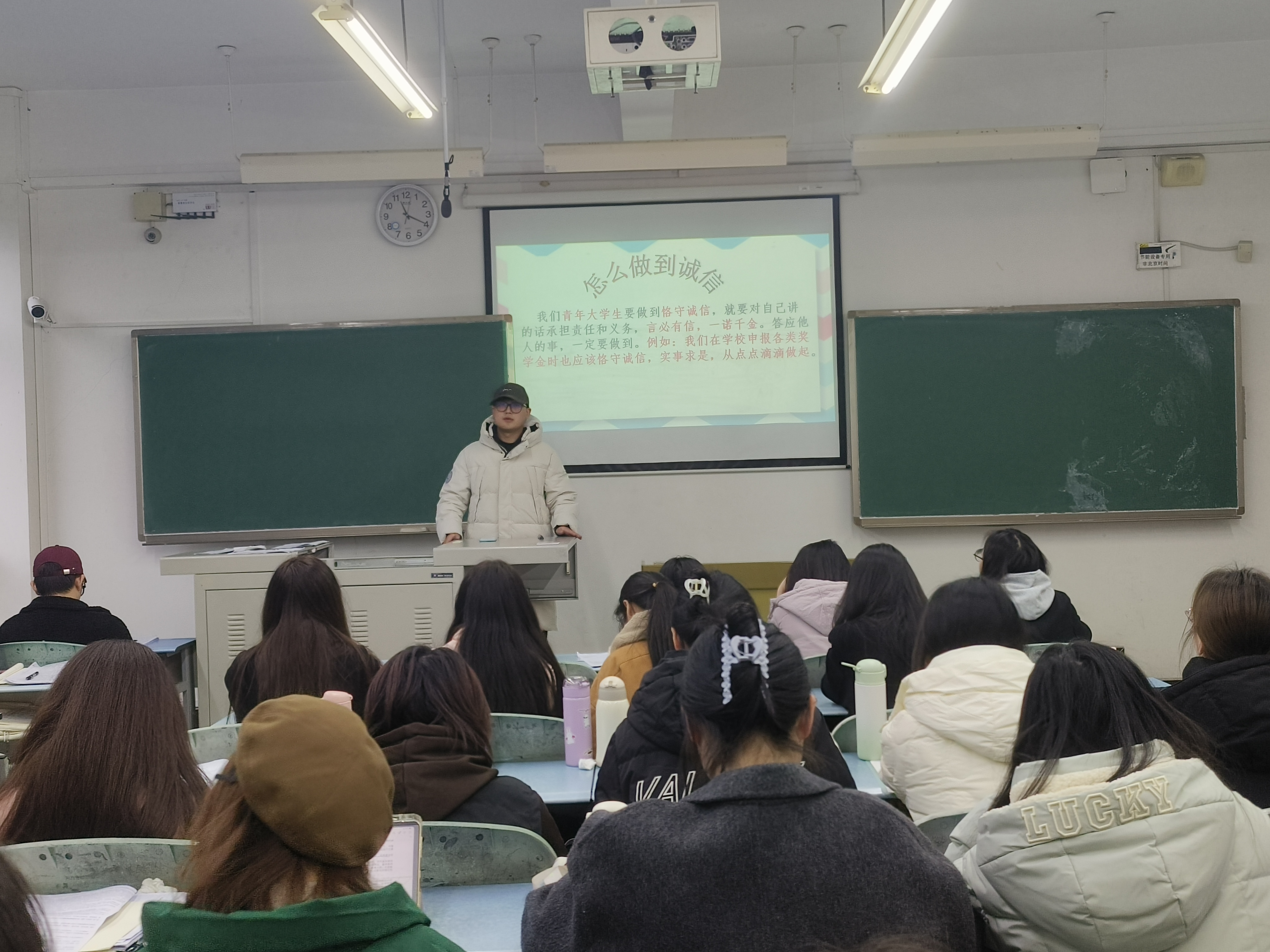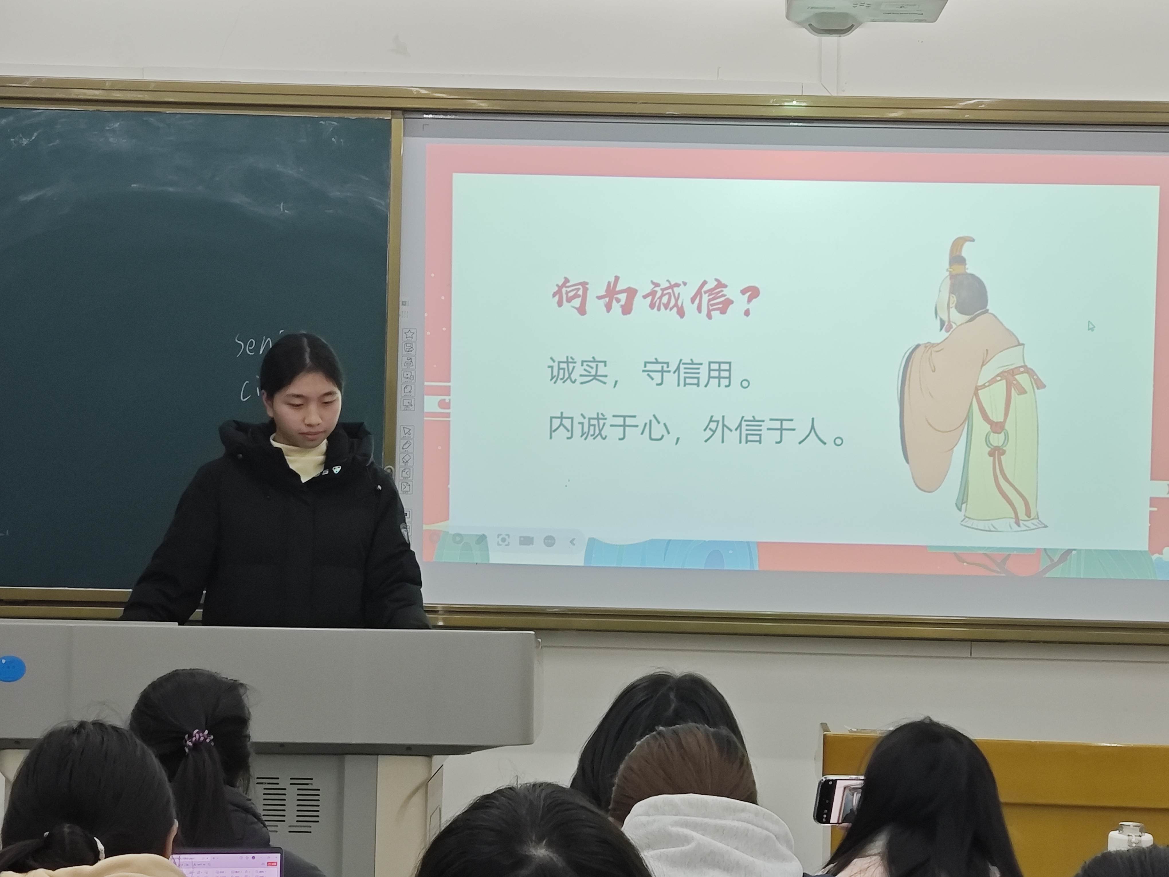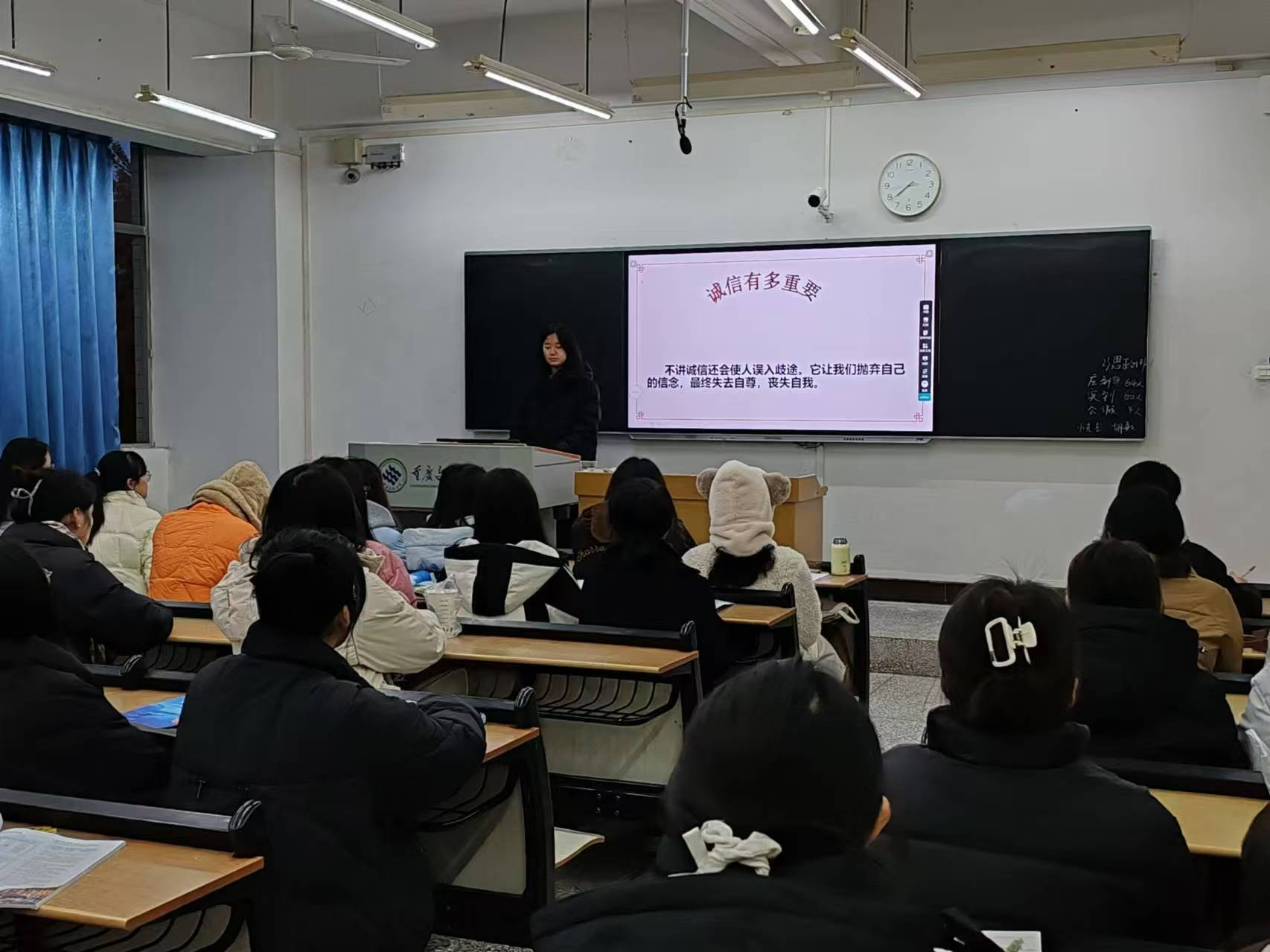 为深入贯彻习近平新时代中国特色社会主义思想和党的二十大、二十届三中全会精神,进一步培养学生诚实守信、知恩图报、自立自强、勇于担当的良好品质,我院大一、大二、大三各年级近日分批次在知津楼各教室开展了诚信教育主题班会。
