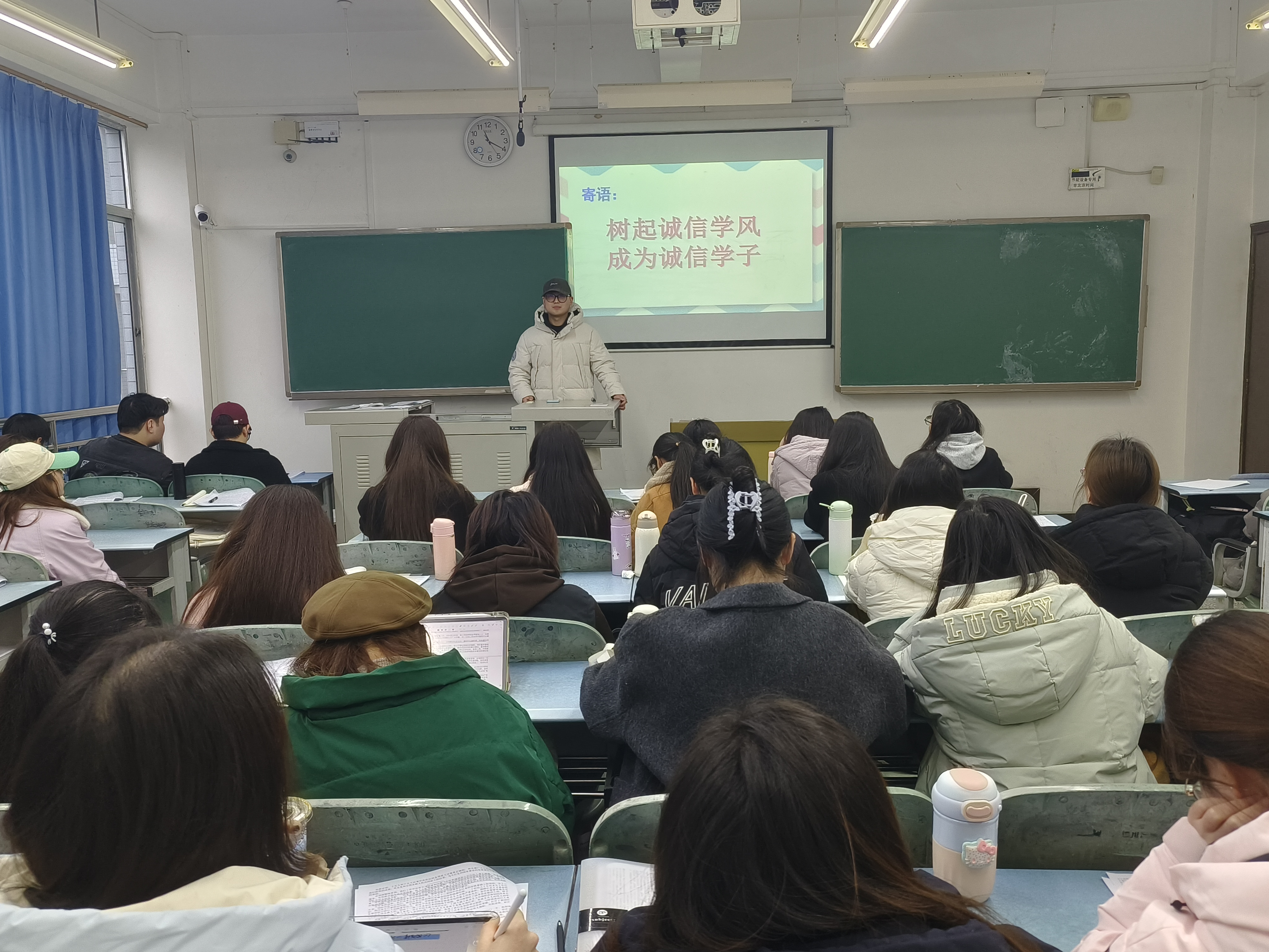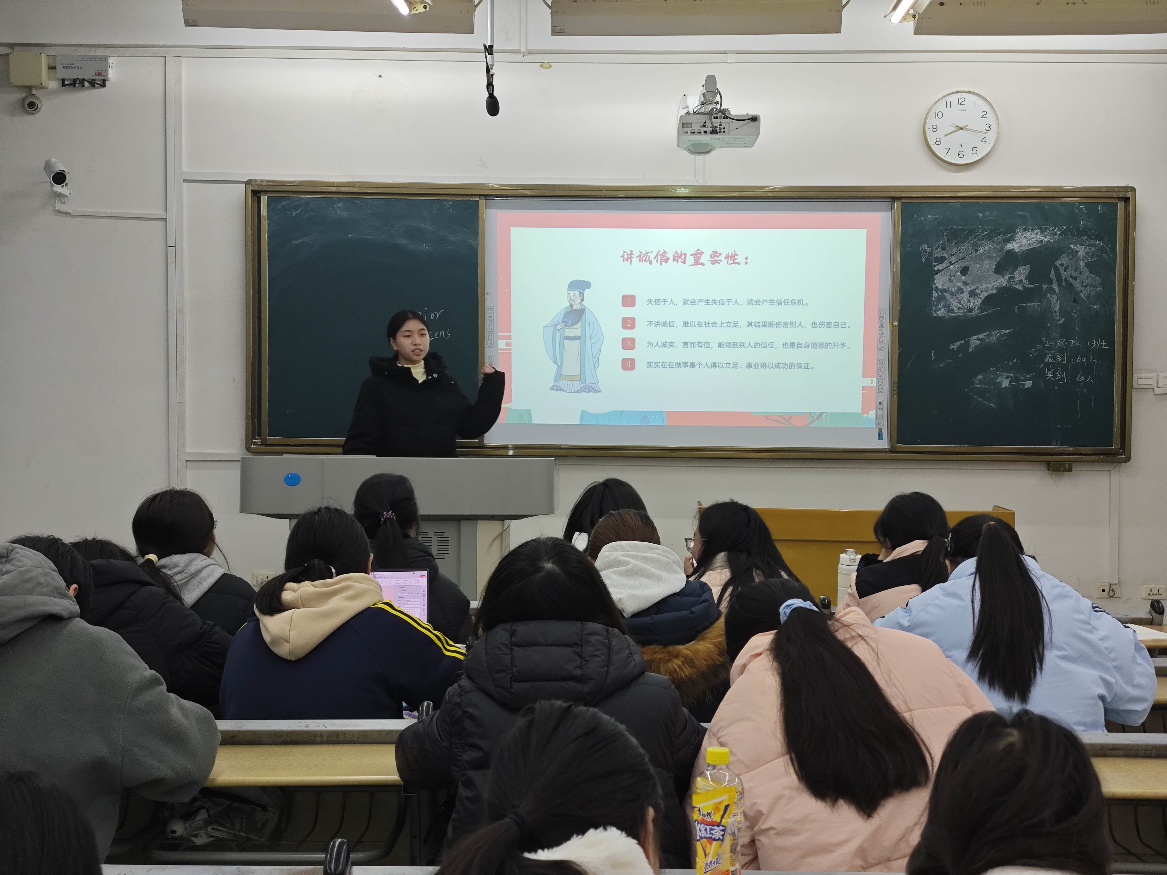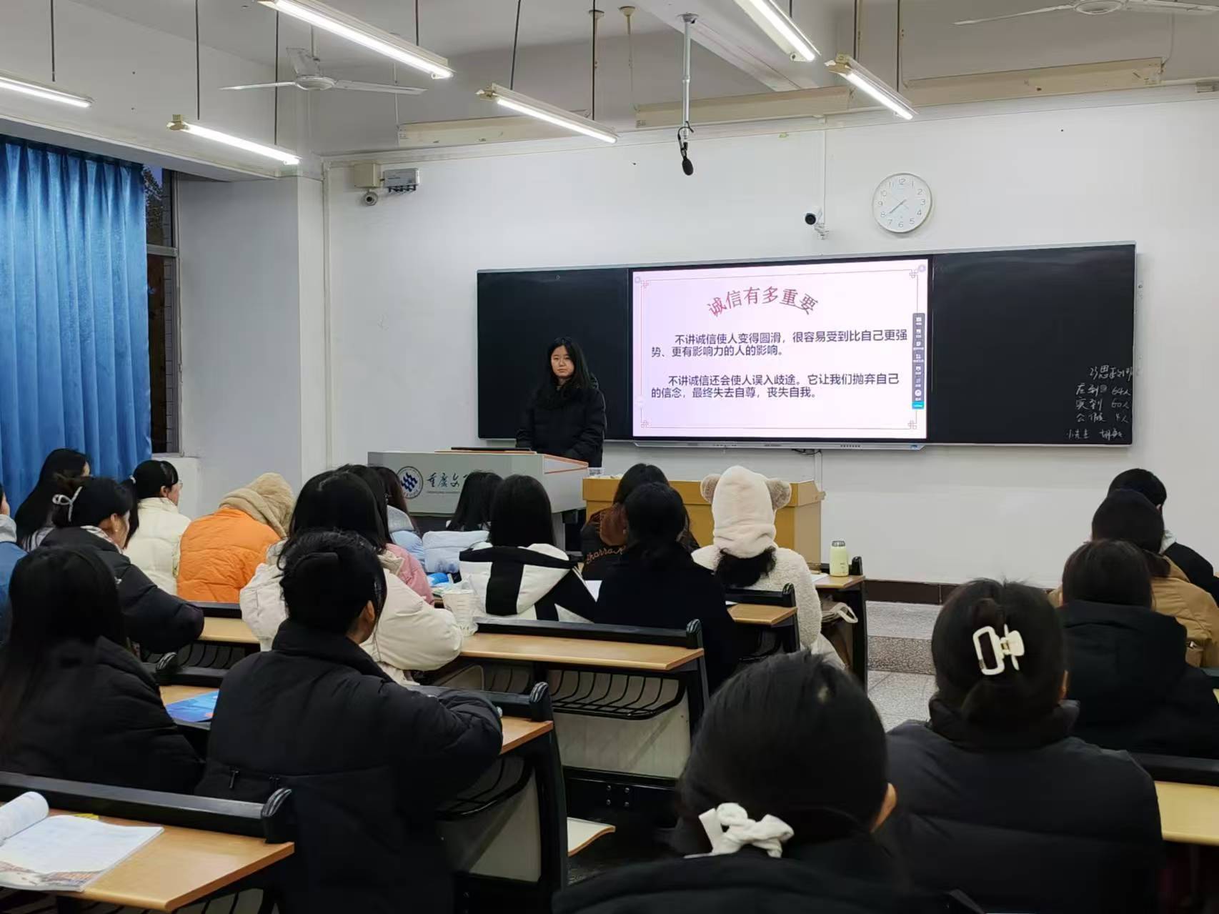 为深入贯彻习近平新时代中国特色社会主义思想和党的二十大、二十届三中全会精神,进一步培养学生诚实守信、知恩图报、自立自强、勇于担当的良好品质,我院大一、大二、大三各年级近日分批次在知津楼各教室开展了诚信教育主题班会。