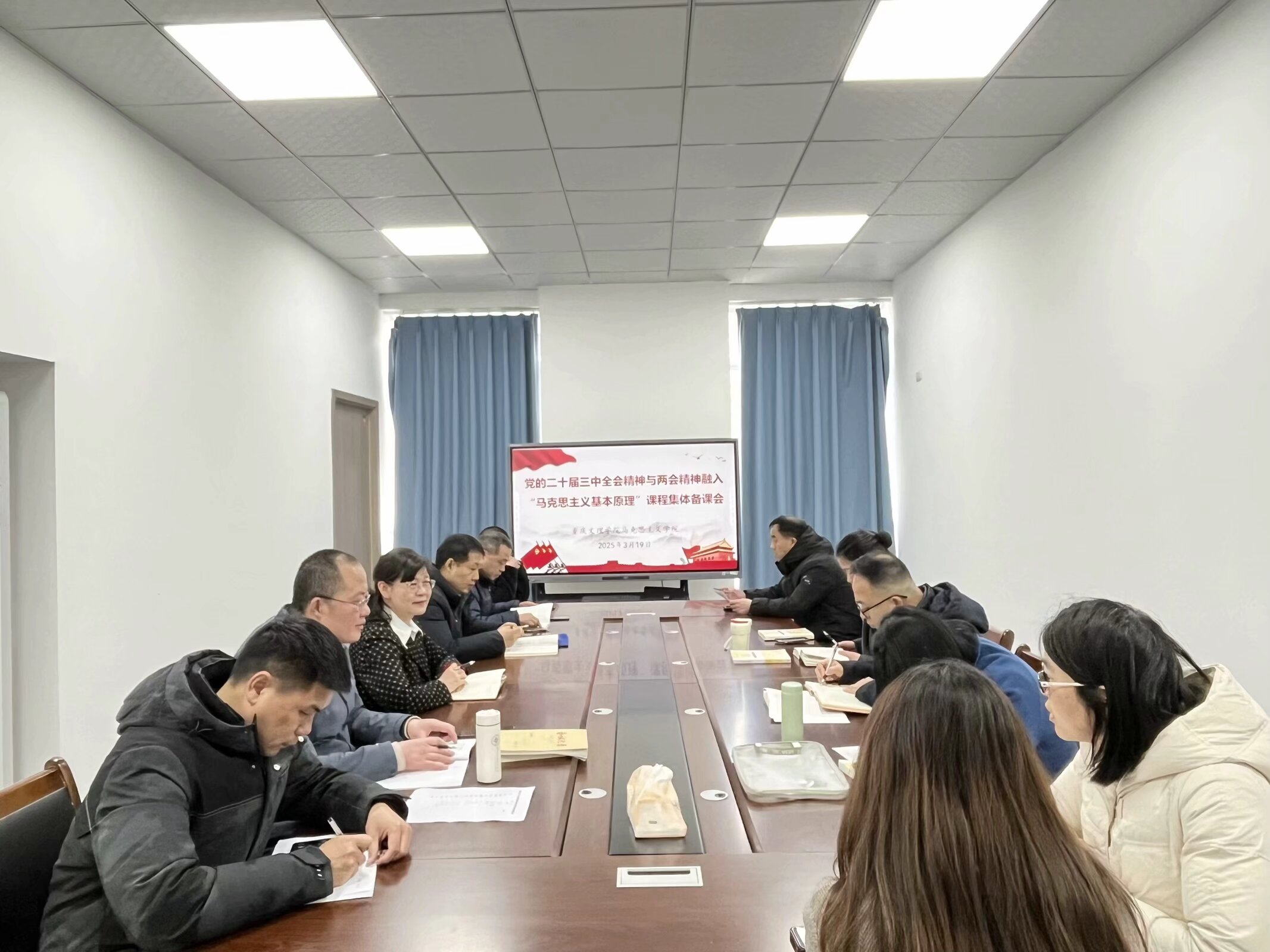 为深入学习贯彻党的二十届三中全会精神、两会精神,及时将会议精神融入思政课教学,3月19日,Betway必威西汉姆联官方网站各教研室开展集体备课会,Betway必威西汉姆联官方网站领导班子以及全体思政课教师参与研讨。
