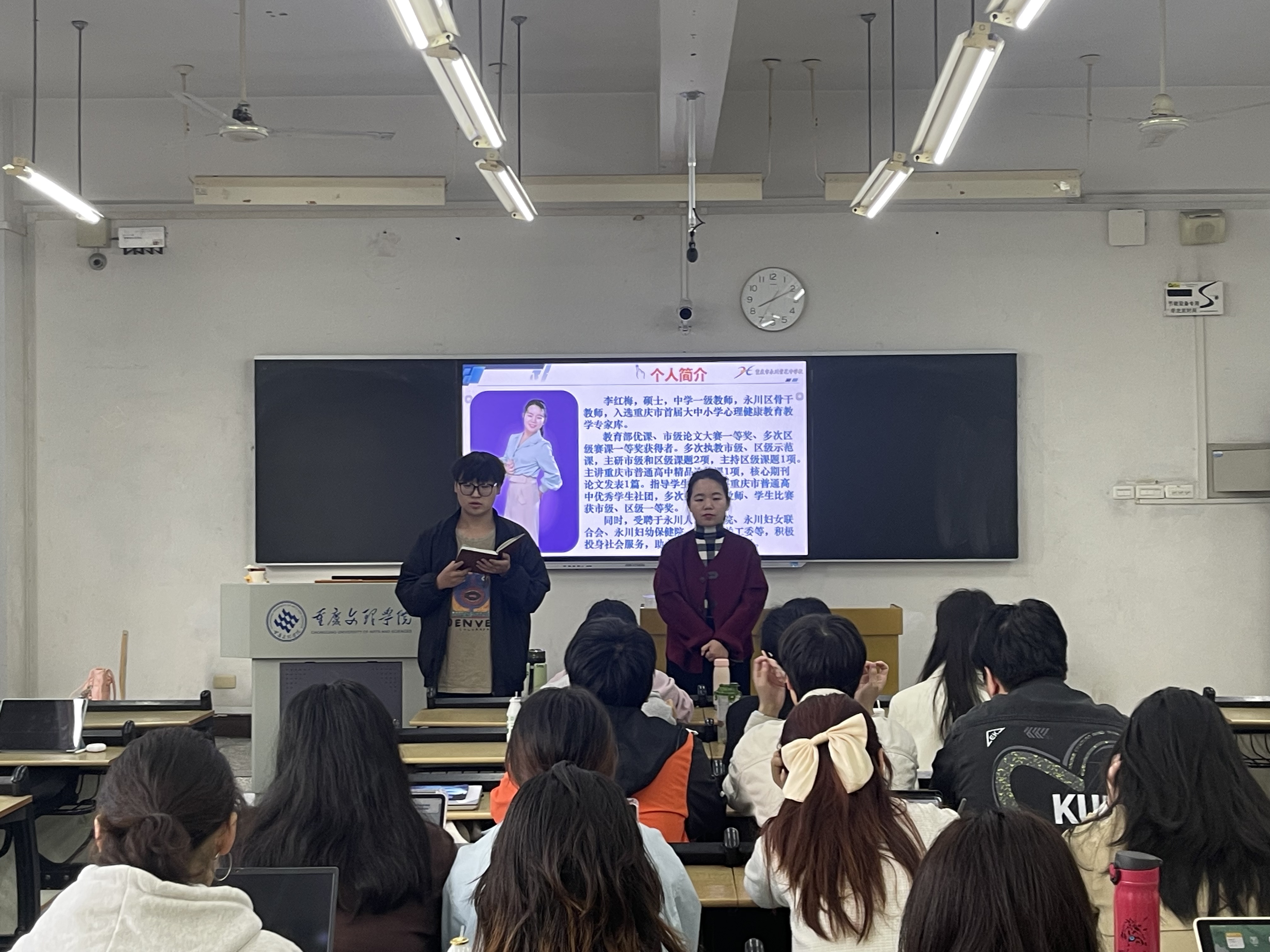 为深入贯彻落实党的二十大、二十届三中全会精神,推动大中小学思政课一体化改革创新,培养优秀的思想政治教育后备人才,2025年3月27日,Betway必威西汉姆联官方网站特邀重庆市永川区骨干教师、永川区萱花中学校教师李红梅老师为2022级思想政治教育师范专业本科学生授课。