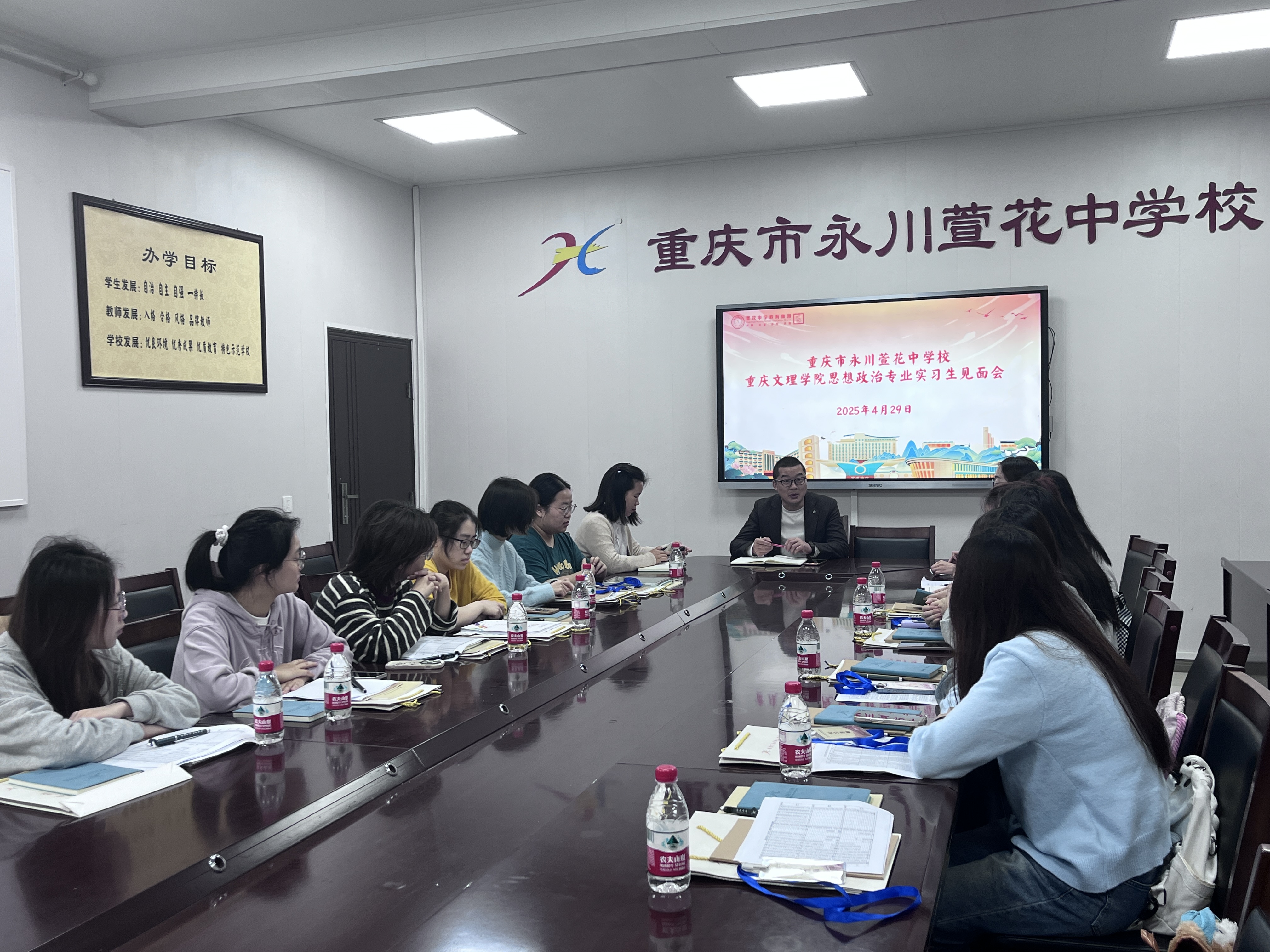 “人间四月芳菲盛,正是逐梦奋进时。”2025年4月29日,重庆文理学院Betway必威西汉姆联官方网站思想政治教育(师范)专业的11名实习生,怀揣着对教育事业的热忱与期待,踏入重庆市永川区萱花中学,开启为期数月的教育实习之旅。作为重庆文理学院政史系优秀校友,同时也是萱花中学校长的欧代军出席实习见面会,并为实习生们带来了一堂兼具理论高度与实践深度的指导课。