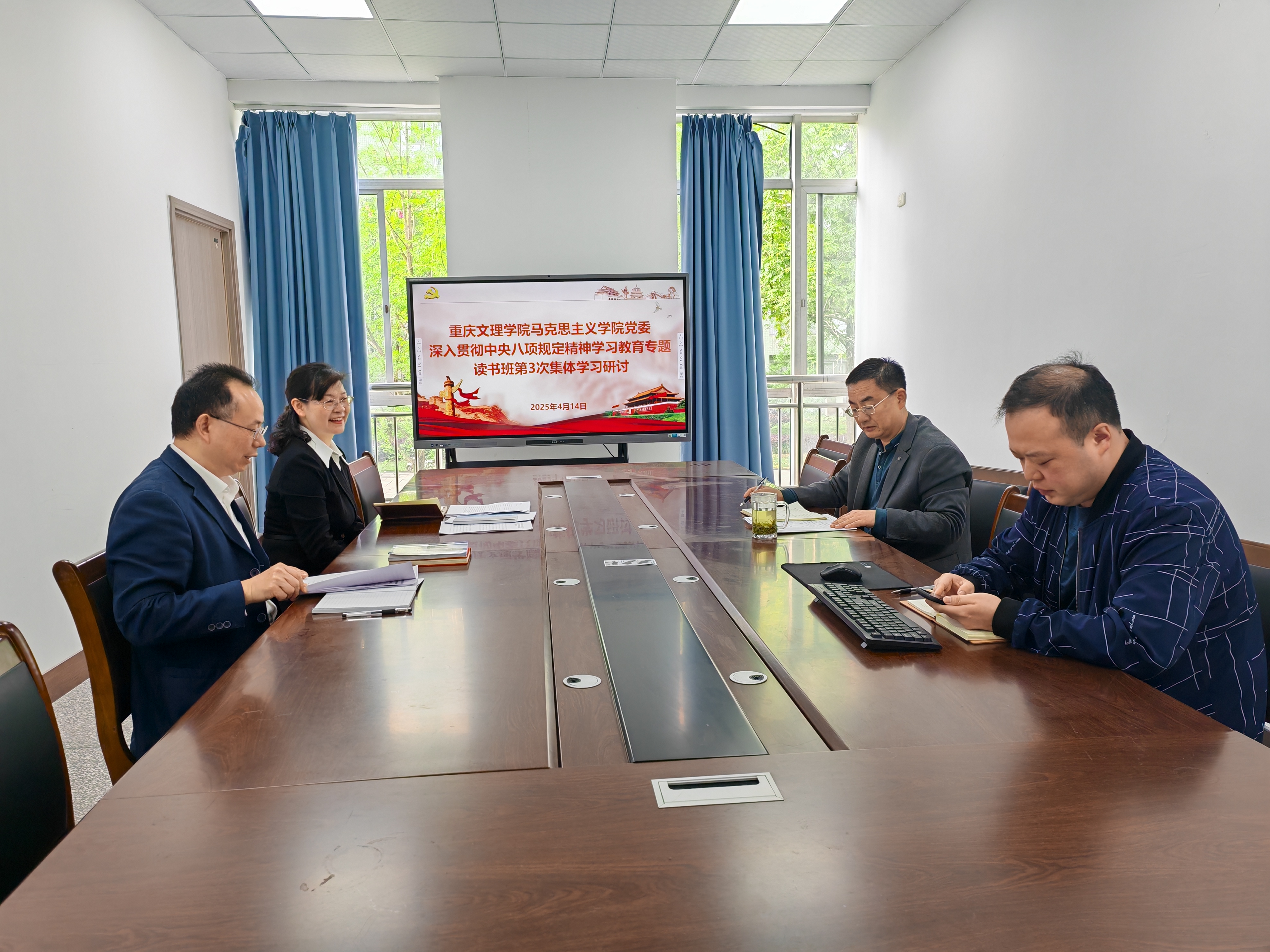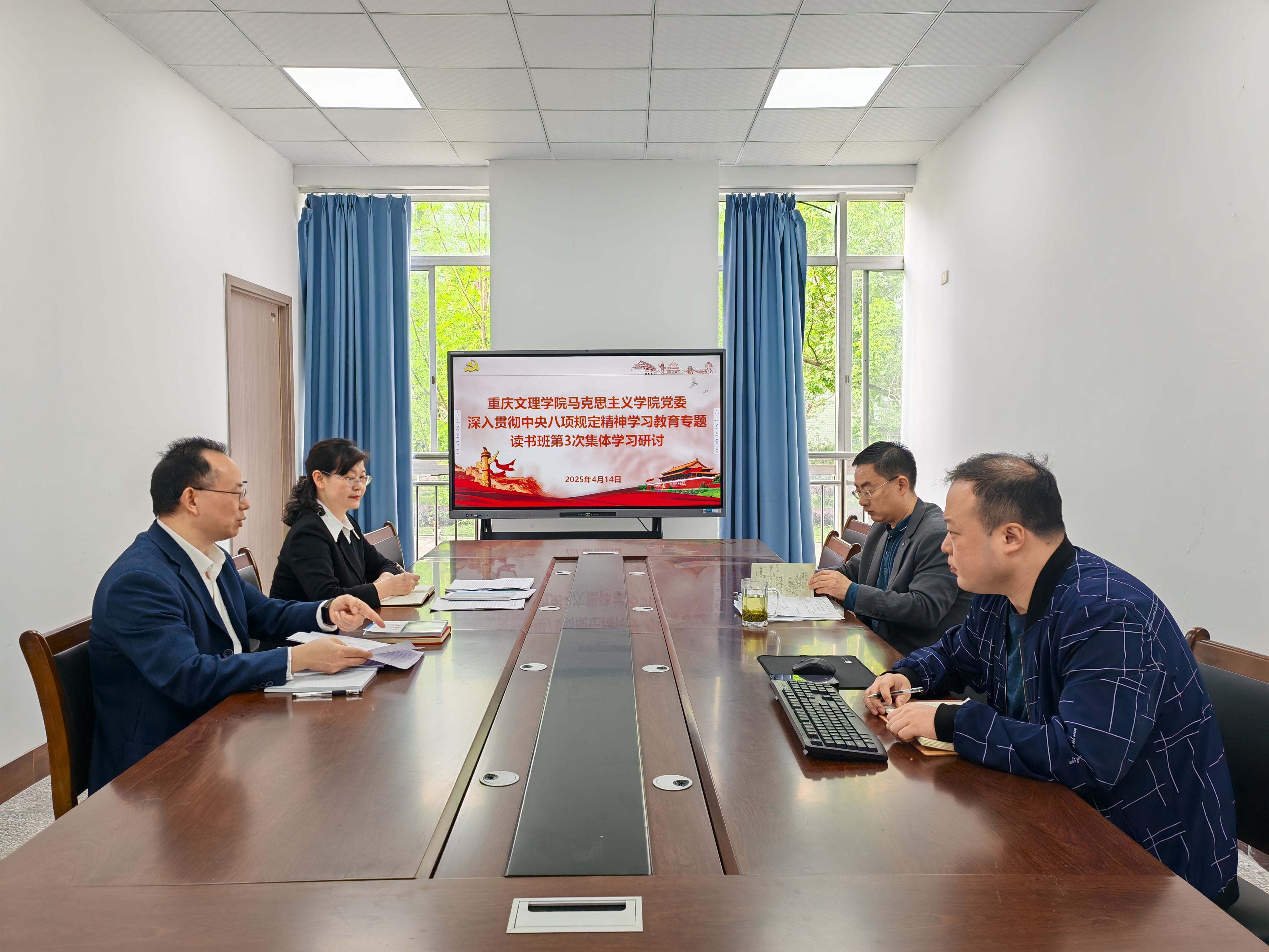 4月14日上午,Betway必威西汉姆联官方网站党委在知津楼B210举行深入贯彻中央八项规定精神学习教育专题读书班第3次集体学习研讨会,党委书记杨正强主持会议,全体党委委员参加学习。